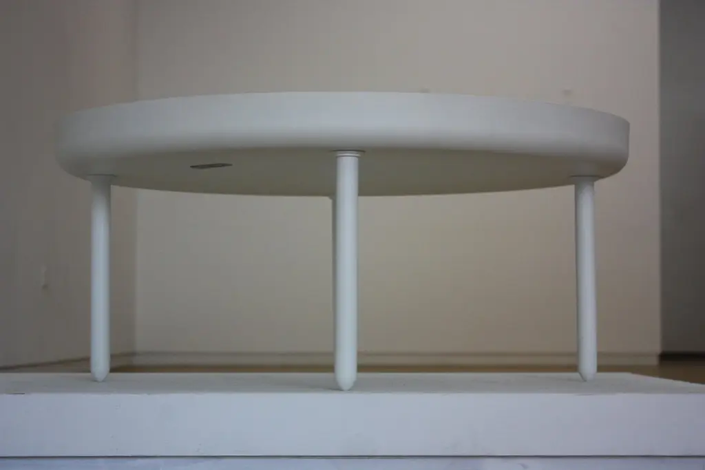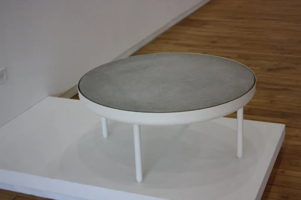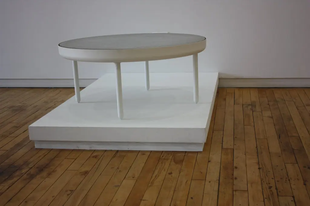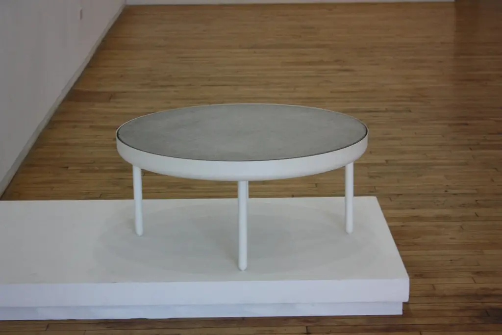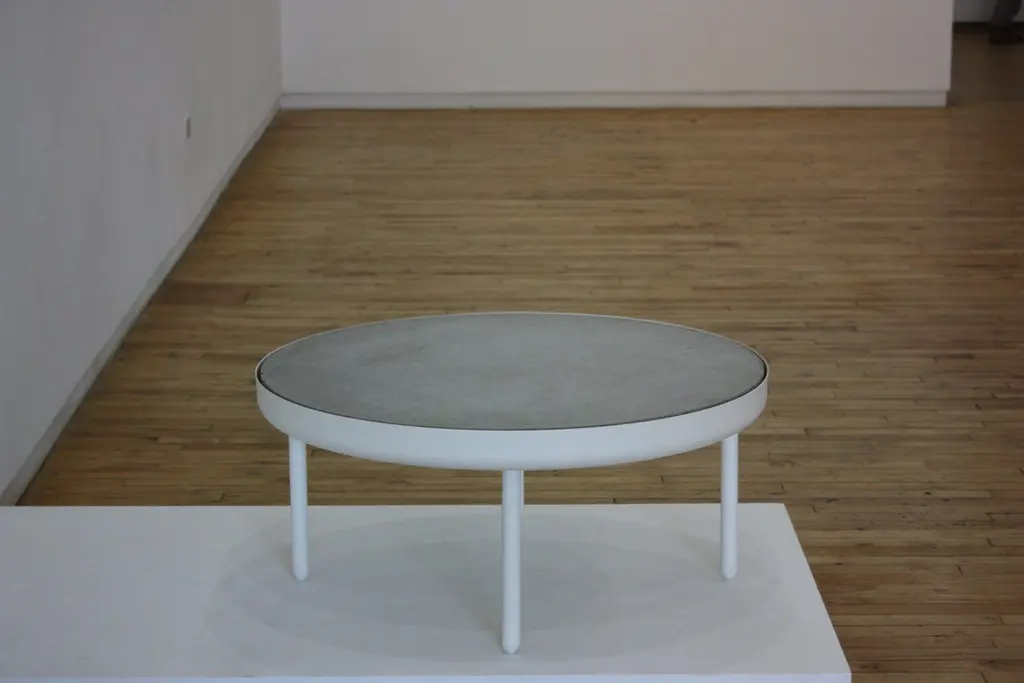 The standard table is made in spun, machined and powder-coated aluminum with an inset cast concrete top. Produced for The New, the inaugural show of Volume Gallery, 2010. Variations and powder colors and tops are available upon request. Limited Edition of 8 + 2 AP.