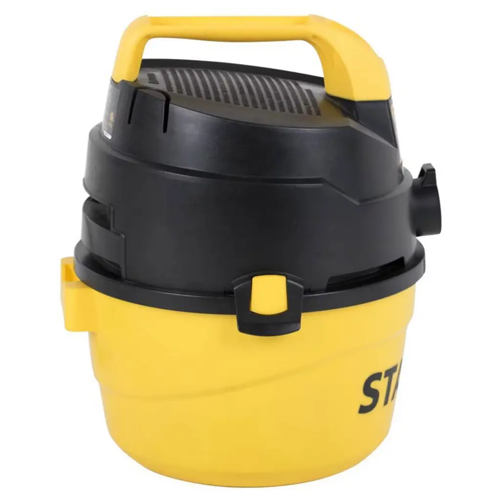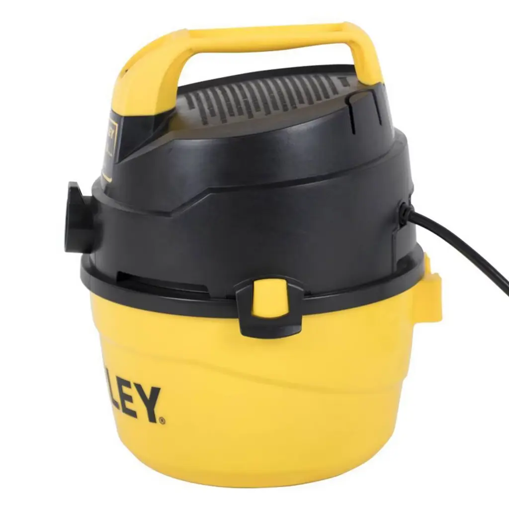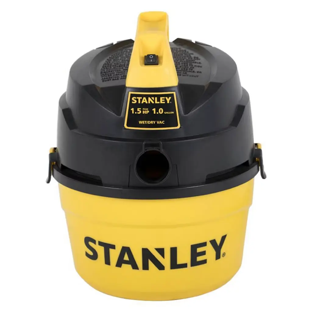 This Stanley 1gal. 1.5 peak horsepower, wall mounted wet/dry vacuum features a high performance motor which provides maximum suction power. The light weight and compact design is ideal for easy carrying. The 6 ft. power cord with cord wrap design aids in organization. Accessories included: 1 in. to 1/4 in. x 4 ft. flexible hose, crevice nozzle, utility nozzle, reusable dry filter, foam filter, and wall mount. Tank capacity refers to actual tank volume and does not reflect capacity available during operation. Peak Horsepower" (PHP) is a term used in the wet/dry vacuum industry for consumer comparison purposes. It does not denote the operational horsepower of a wet/dry vacuum but rather the horsepower output of a motor, including the motor's inertial contribution, achieved in laboratory testing. In actual use, motors do not operate at the peak horsepower shown.