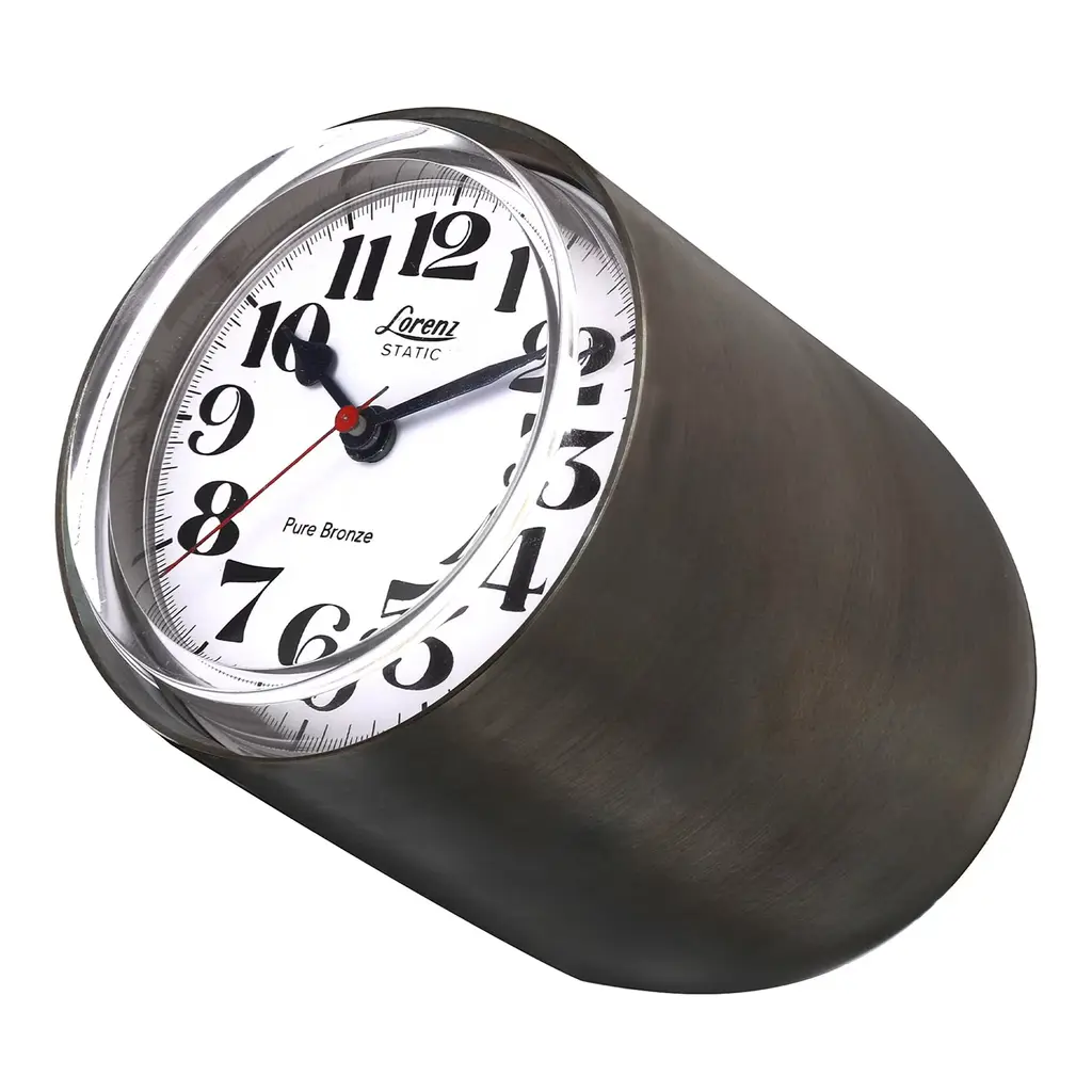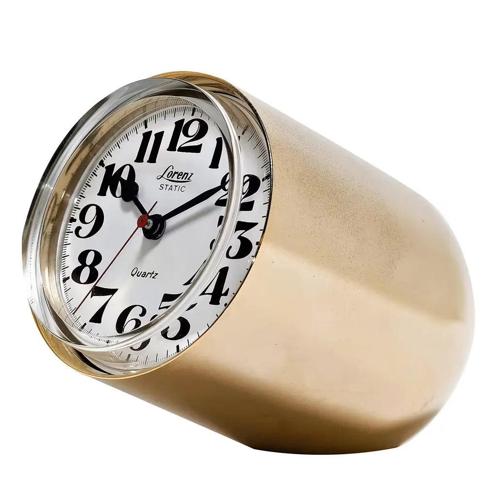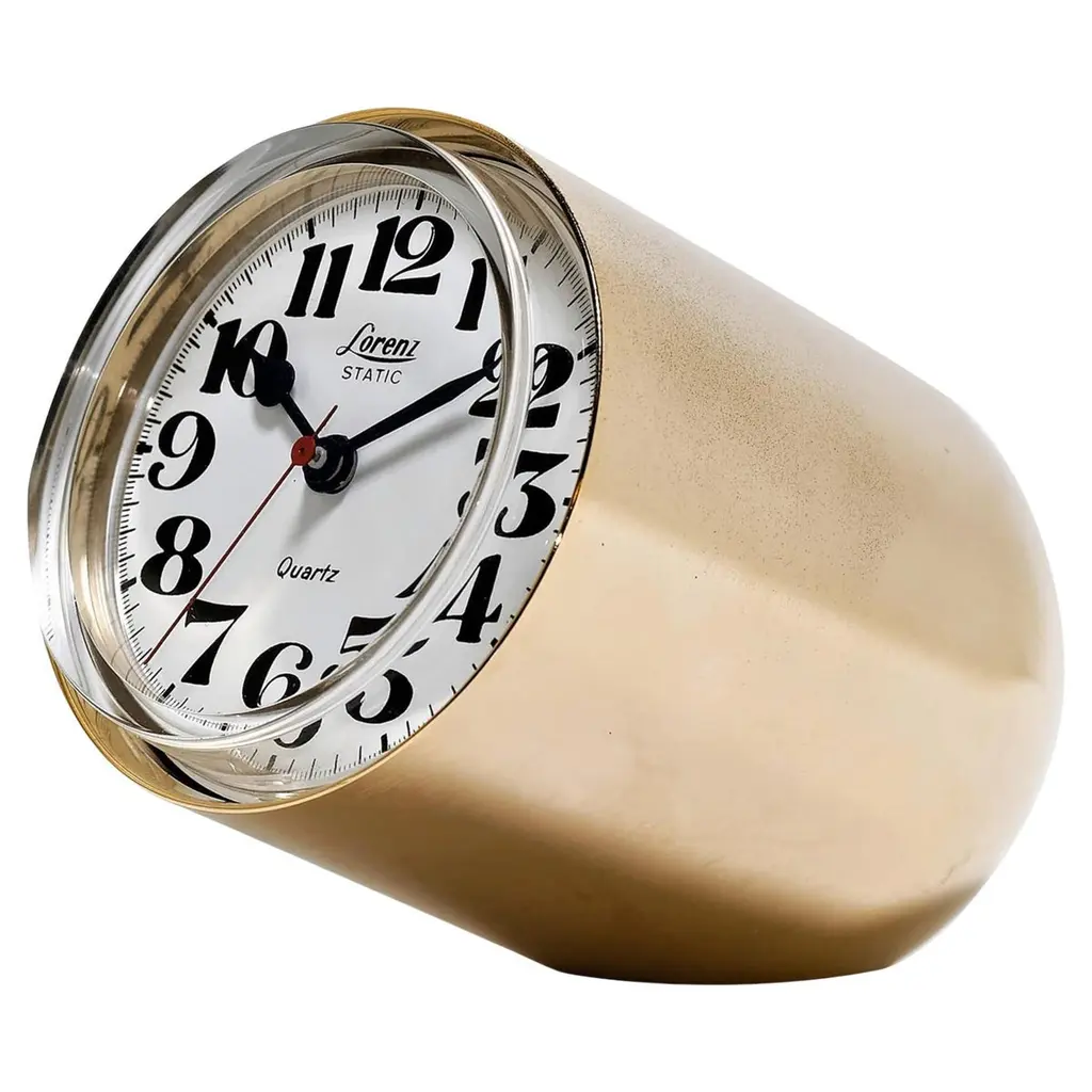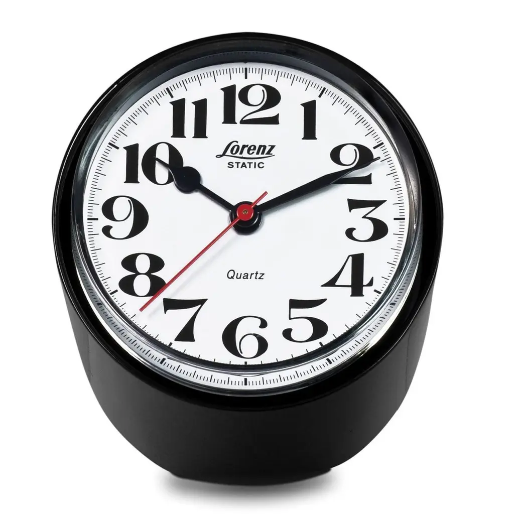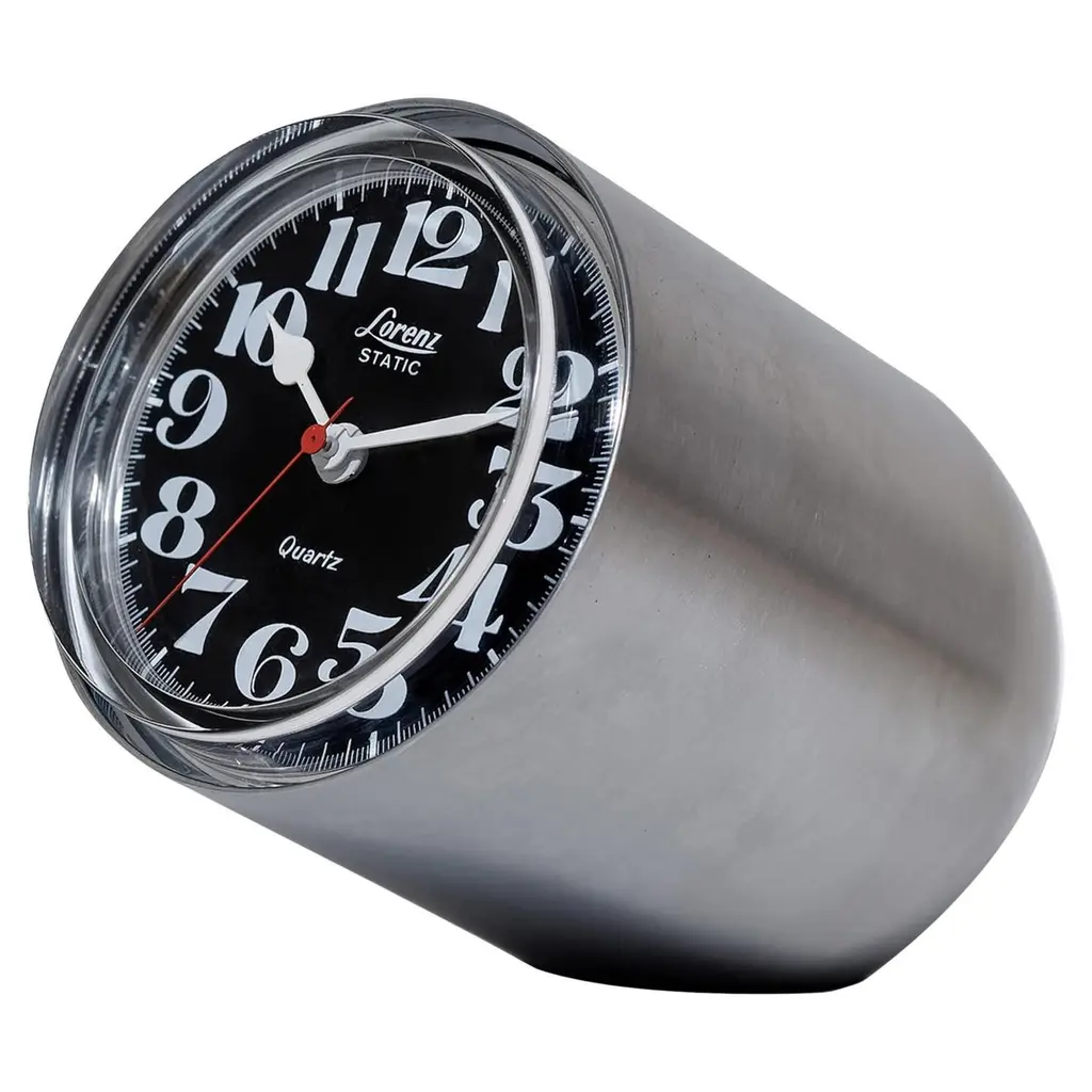 A timeless icon of contemporary design, this extraordinary table clock is a new edition of an original design by Richard Sapper, winner of the Compasso D'Oro Award in 1960. Handcrafted of black-lacquered steel, its innovative silhouette faces upwards and rests obliquely on the tabletop, just like the original design. Available in other tones and materials, please consult the Artemest catalog for options. Batteries are included.