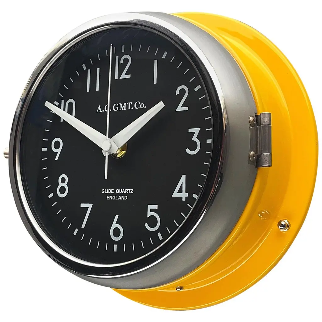 A singular design from the new edition of the spectacular Static Table Clock originally designed by Richard Sapper and winner of the 1960 Compasso D'Oro Award, this stunning table clock will make an iconic addition to a contemporary interior. Handmade steel with satin gold plated finishing, rests obliquely on a tabletop facing upwards. Please consult the Artemest catalog for other available hues. Batteries are included.