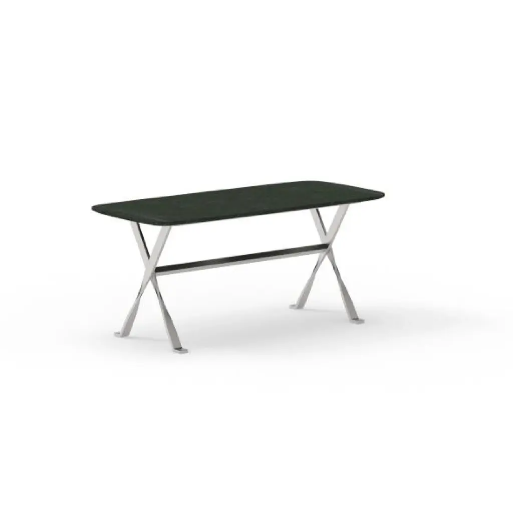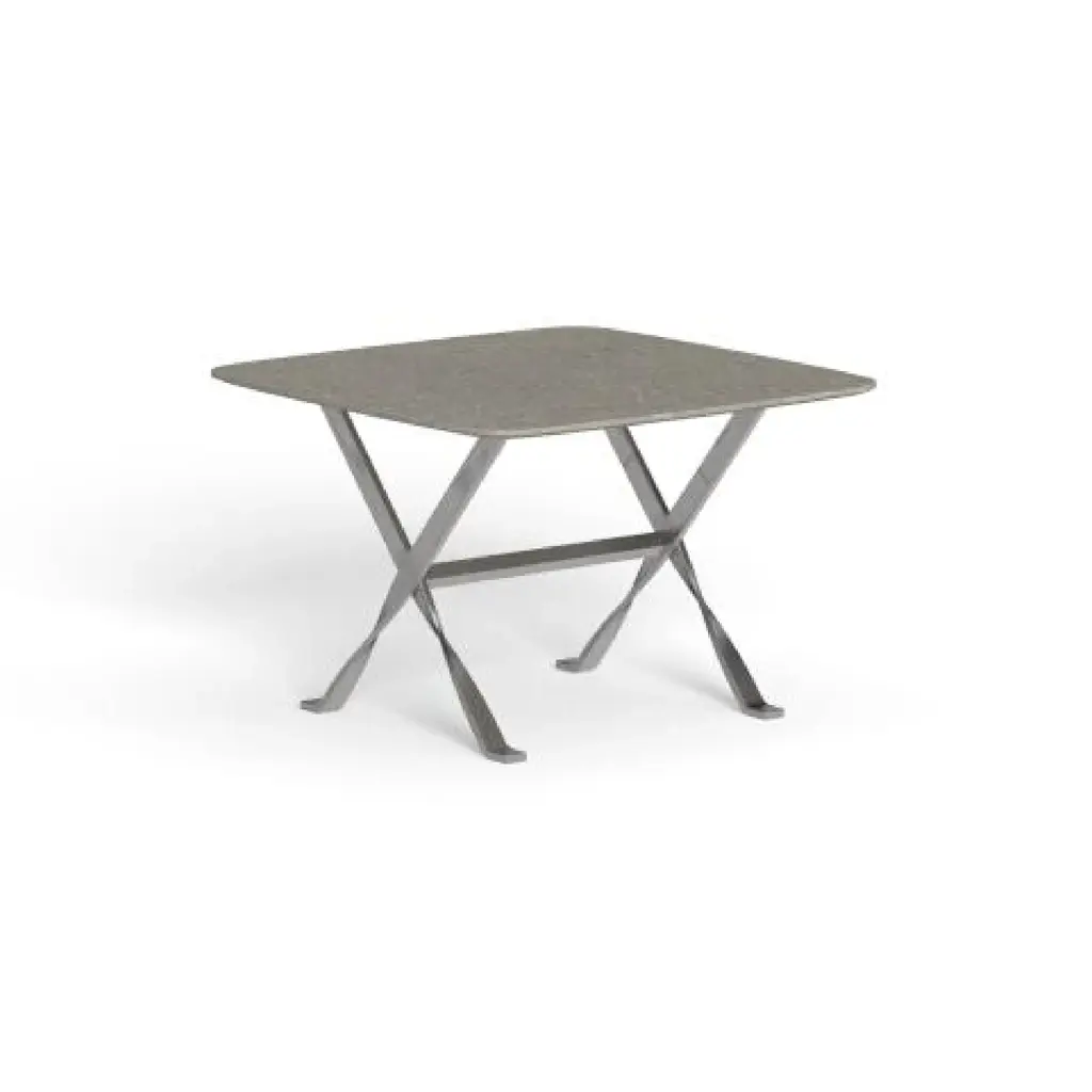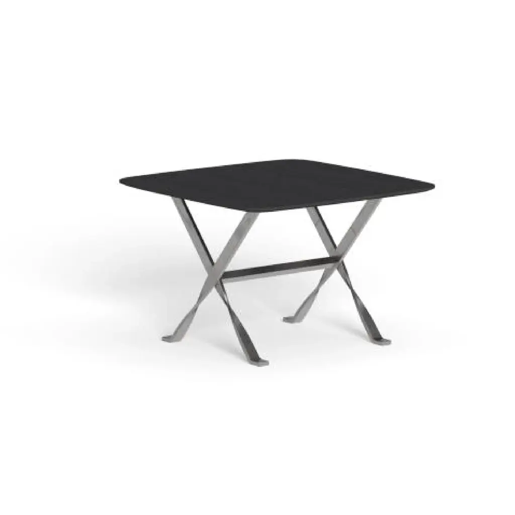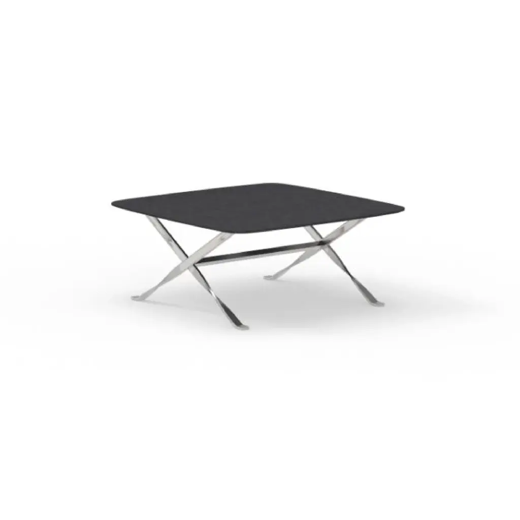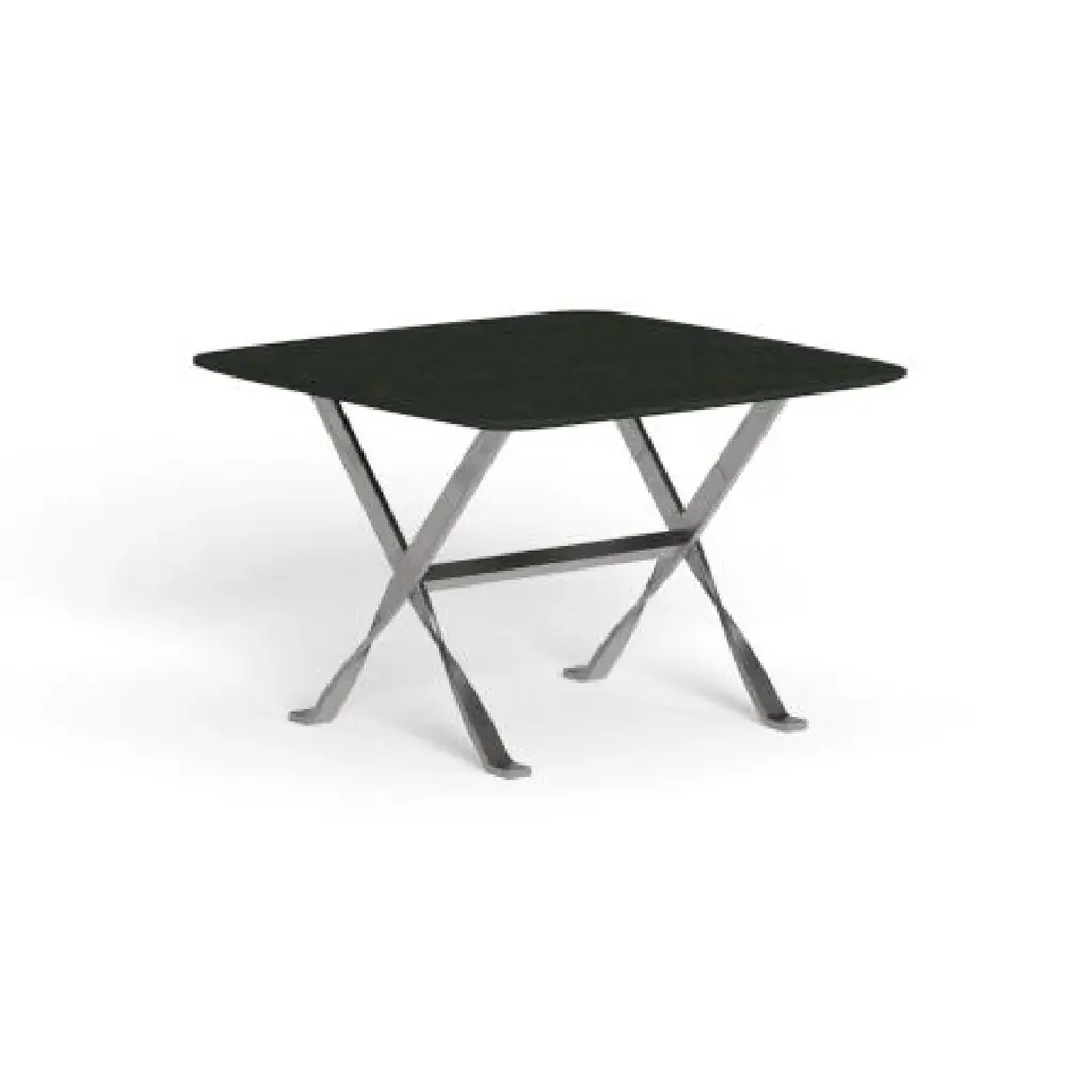 A square and rectangular top with compact dimensions makes the George coffee table ideal for creating unique combinations with the other coffee tables of the collection. The solid stainless-steel frame and the top available in two different versions, accoya wood and lava stone, are the hallmarks of the coffee table, perfect for your outdoor space.