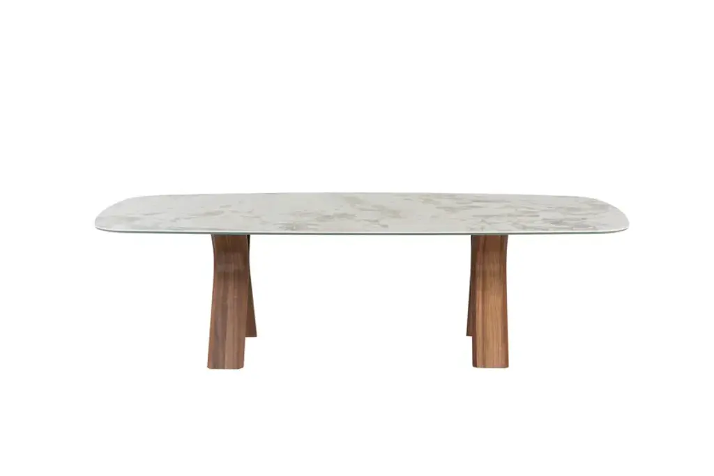 Still is a fixed table with thermocurved wood base, designed to be combined with elegant ceramic glass or porcelain stoneware tops.The simplest lines can be the most elegant and the most timeless ones.