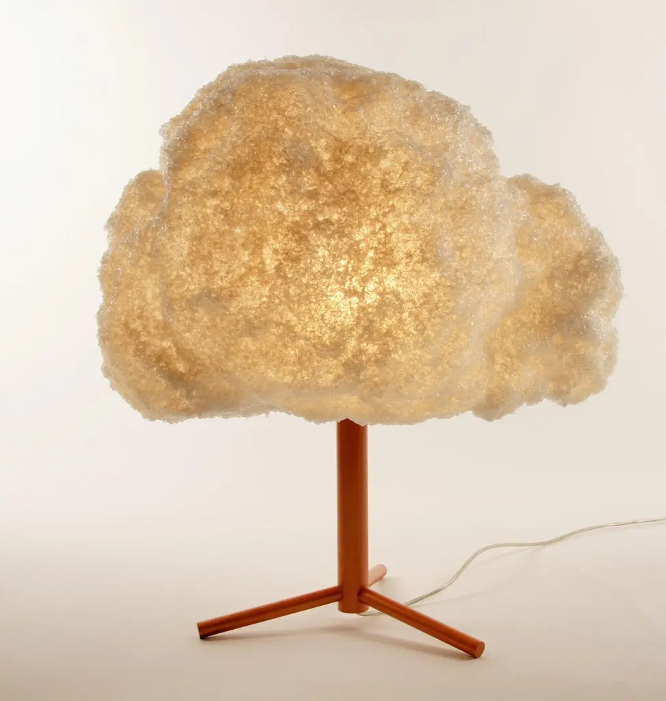 Storm table light copper by Johannes Hemann.Material: Polycarbonate, walnutDimensions: Ø 38 x H 45 cm.The Storm Series is by its concept the purest example of a process-design, where the designer seeks to set creative parameters to allow an object to shape itself, without any further direct involvement. The aim of this project is to create forms through storm winds. Johannes Hemann creates storm boxes, in which he releases storms from high pressure air . The storm is the base of the project: ‘the silence before the storm’. The ma- terial lies on the bottom of the box – ‘standstill’ – the air comes in, the storm begins and the energy is transferred from the wind to the material. ‘The wind stops’ - the form has been shaped and the silence after the storm sets in. The storm energy is then visible in the shape. Each piece is unique, as each generated storm finds different expressions.All our lamps can be wired according to each country. If sold to the USA it will be wired for the USA for instance.