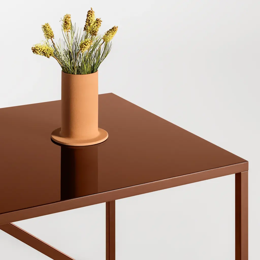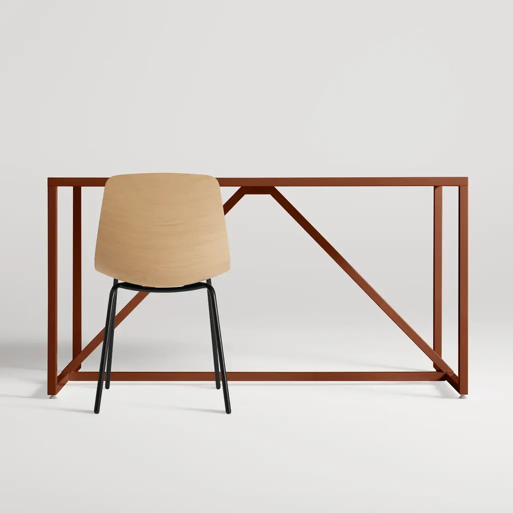 Sashay! Shantay! Strut works its architectural angles to the max. Ample work space, dining space or dance space. Powder-coated steel frame with polyurethane wood substrate top.