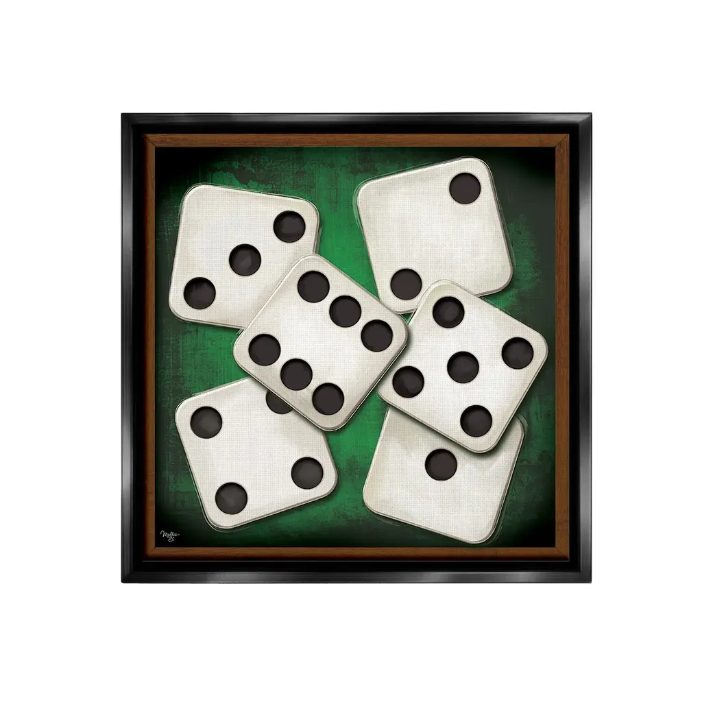Elevate your home or office to the next level with Stupell Framed Floating Canvas Wall Art. Our premium hand-stretched canvas is mounted securely into a sturdy lightweight frame. The museum-style gap between the wrapped canvas and the box frame gives the illusion of floating artwork. Stupell Wall Art is made in the USA.Features: Dimensions: 18 x 1.7 x 18 Frame, 17 x 1.5 x 17 Canvas ArtFloating Frame Canvas Products are available in sizes 18"x18" and 25"x25". All Floating Frame Canvas Products have a 1.7" Depth.Wall Art is Ready to Hang with Hardware Free Hanging. No Installation required. For Easy Set Up Lean or Layer Artwork on Shelf or Against Wall. Artwork is Permently Fixed into the Frame.Our elevated 1.7" Thick Floating Frame is the perfect complement to our canvas style Wall Art. We use only the highest quality inks in house with industry leading printing solutions. Canvas is hand stretched over a durable wood foundation and then mounted securly into a Modern Box Frame. Made in the USA.Artwork Relates To: Game, Dice, Bar, CasinoDesign by Molly B.