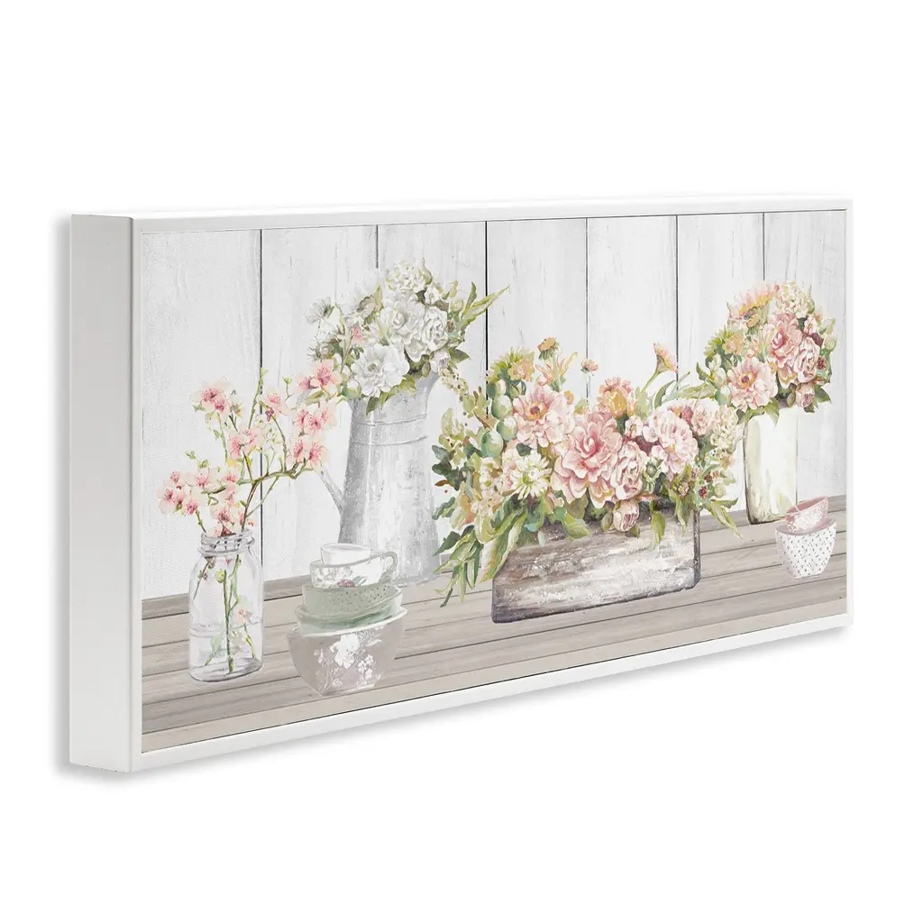 Stupell Farm Table Bouquet Still Life Lush Pink Florals Framed Wall Art - 24 X 10 - White