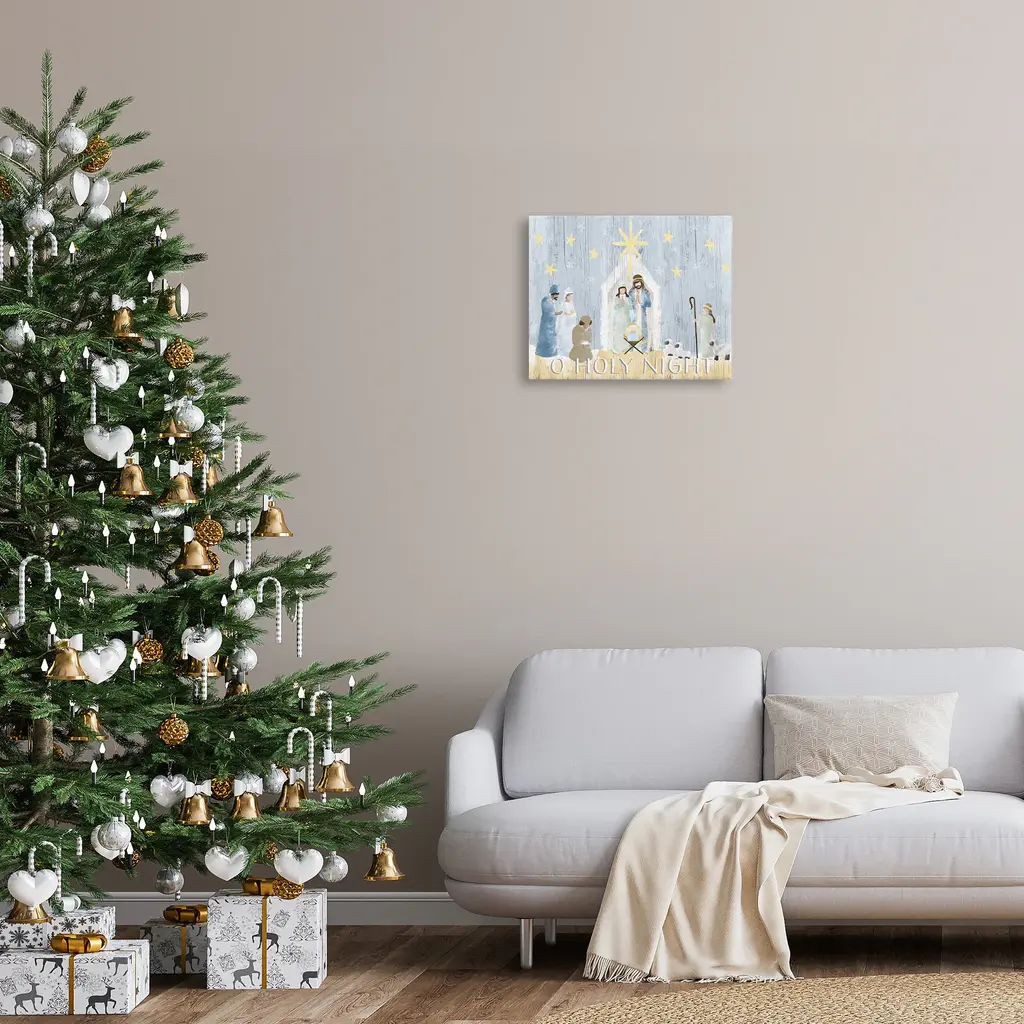 Stupell Nativity Barn Stable Christmas Holiday Rustic Scene Canvas Wall Art - Blue - 16 X 20