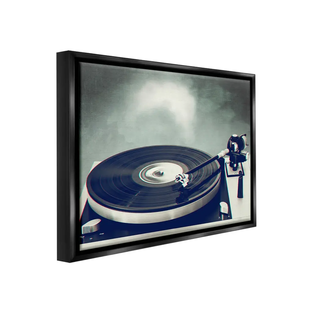 Elevate your home or office to the next level with Stupell Framed Floating Canvas Wall Art. Our premium hand-stretched canvas is mounted securely into a sturdy lightweight frame. The museum-style gap between the wrapped canvas and the box frame gives the illusion of floating artwork. Stupell Wall Art is made in the USA.Features: Dimensions: 21 x 1.7 x 17 Frame, 20 x 1.5 x 16 Canvas ArtFloating Frame Canvas Products are available in sizes 21"x17" and 31"x25". All Floating Frame Canvas Products have a 1.7" Depth.Wall Art is Ready to Hang with Hardware Free Hanging. No Installation required. For Easy Set Up Lean or Layer Artwork on Shelf or Against Wall. Artwork is Permently Fixed into the Frame.Our elevated 1.7" Thick Floating Frame is the perfect complement to our canvas style Wall Art. We use only the highest quality inks in house with industry leading printing solutions. Canvas is hand stretched over a durable wood foundation and then mounted securly into a Modern Box Frame. Made in the USA.Artwork Relates To: Music, Turntable, Record Player, Vinyl Record, Musician, Monochrome, PhotographyDesign by Dirk Wüstenhagen