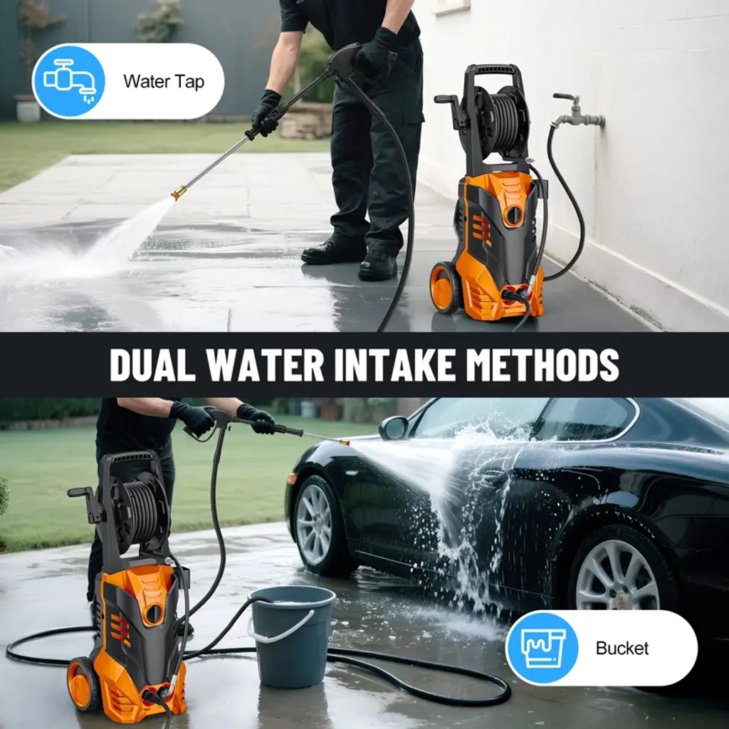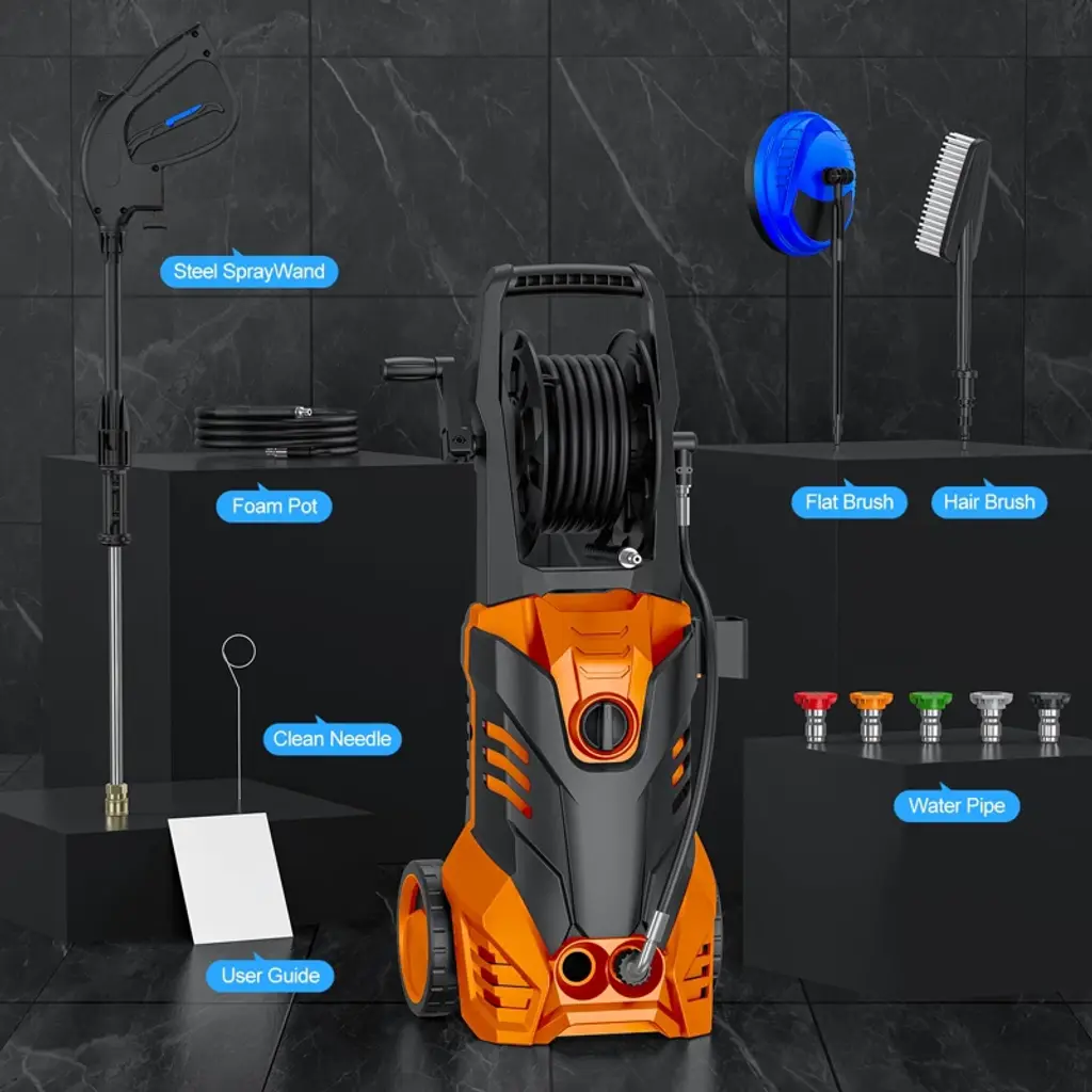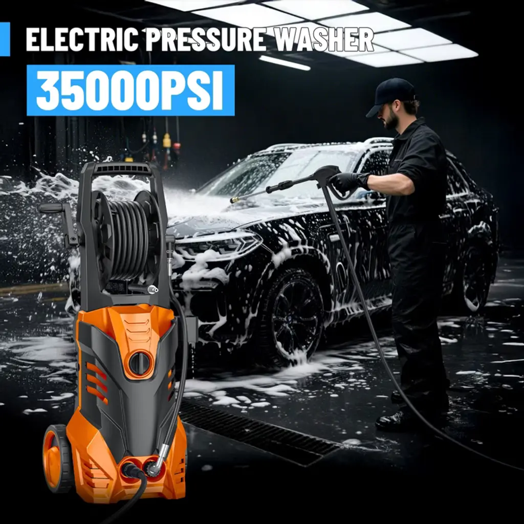 Sugift 3500 Psi Electric Pressure Washer, 5 Quick-connect Nozzles, Built-in Hose Reel, Safe & Portable For Driveways, Cars, And More