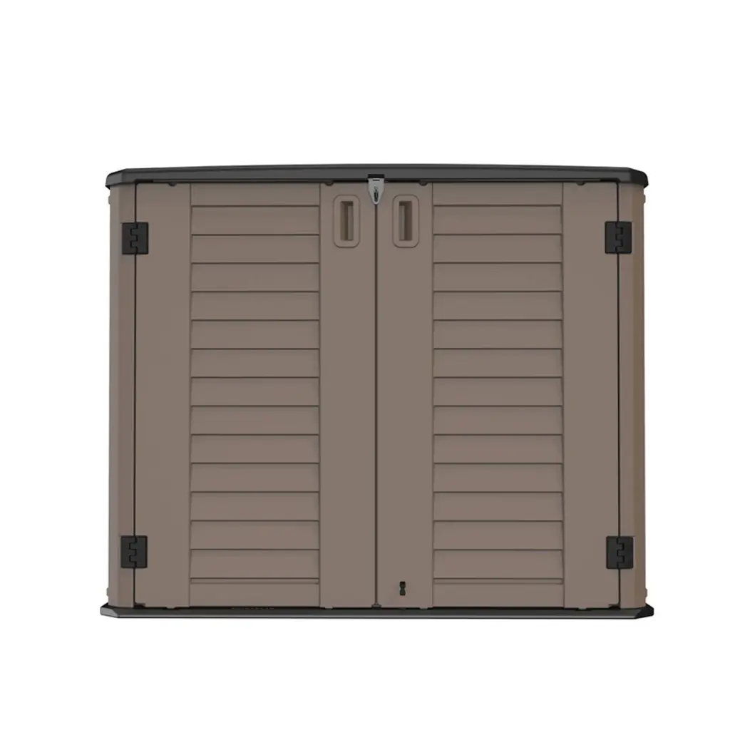 Elevate your backyard organization with the Suncast Glidetop Horizontal Storage Shed, a worthy solution for streamlining your outdoor storage needs. Crafted with a sleek, low-profile design, this versatile shed seamlessly blends into any patio, garden, or yard, providing ample space to tame the clutter and keep your belongings safe and secure. Boasting a spacious 34 cubic feet of storage capacity, this shed offers ample room to house a wide range of outdoor essentials, from gardening tools and lawn equipment to patio furniture and pool accessories. The wide, double doors and hinged lid make it easy to access and organize your items, while the reinforced resin construction ensures exceptional durability and weather protection. Designed with your convenience in mind, the shed features a 3-door locking system, allowing you to safeguard your belongings with ease. The sturdy, reinforced resin floor can withstand heavy loads, making it the ideal storage solution for bulky or oversized items. Additionally, the durable construction protects your shed from the elements, ensuring it maintains its attractive, professional-looking appearance for years to come. Whether you're seeking a compact storage solution for your patio furniture, a secure home for your utility tools, or a designated space for your trash cans and recycling bins, the Suncast Glidetop Horizontal Storage Shed is the answer. Its versatile design and ample capacity make it an indispensable addition to any outdoor living space, helping you maximize your storage potential and keep your backyard organized and clutter-free.