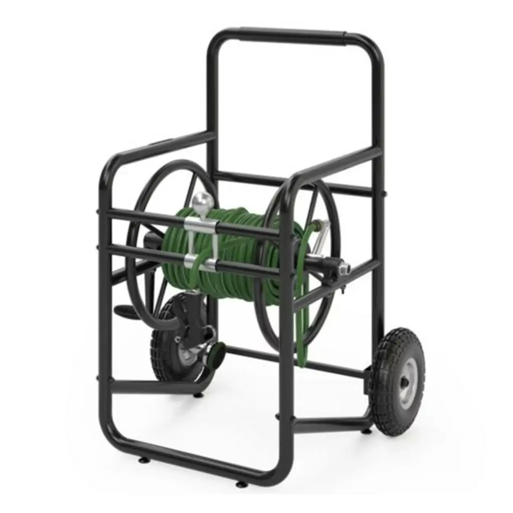 Making your lawn and garden life easier and more convenient is possible with this 3-pack of Suncast Professional Hose Reel Carts, a reliable and durable solution to your outdoor maintenance needs. These manual crank hose reel carts are made from powder-coated steel that resists weather to ensure longevity through the changing seasons. The 10-inch flat-free rubber tires with ribbed treads make it easy to transport your hose storage reel across any terrain. Featuring a cushioned handle, these wheeled hose reels ensure a comfortable grip while you're maneuvering the cart around your yard. The slide track feature helps guide the hose evenly for kink-free winding, while the metal crank with a swivel grip allows for effortless winding (hose not included). Metal hose connections eliminate cross-threading for a secure fit. Partially assembled to save you time, the 3-pack of Suncast Professional Hose Reel Carts is designed to store up to 200 feet of hose, making it ideal for heavy-duty jobs. Invest in a durable hose reel cart that can withstand the elements and make outdoor maintenance a breeze.