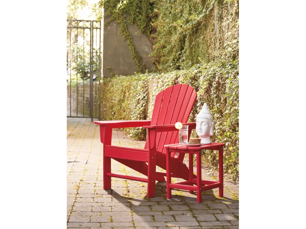 Add cottage-quaint charm to your outdoor oasis with the Sundown Treasure 2-piece outdoor set in red. Made of a hearty hard plastic material with a touch of texture, it’s sure to weather the seasons beautifully. Designed to shed rainwater, the chair and table’s slatted styling provides exceptional form and function.