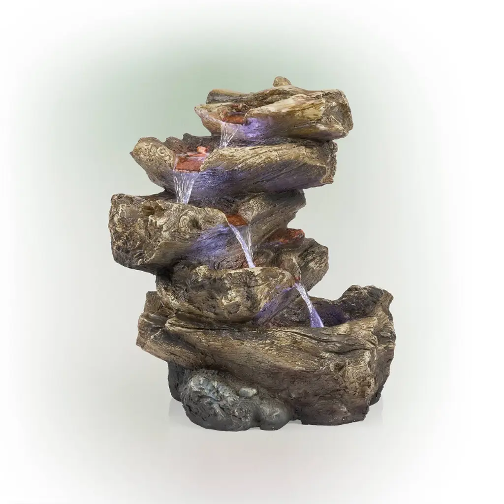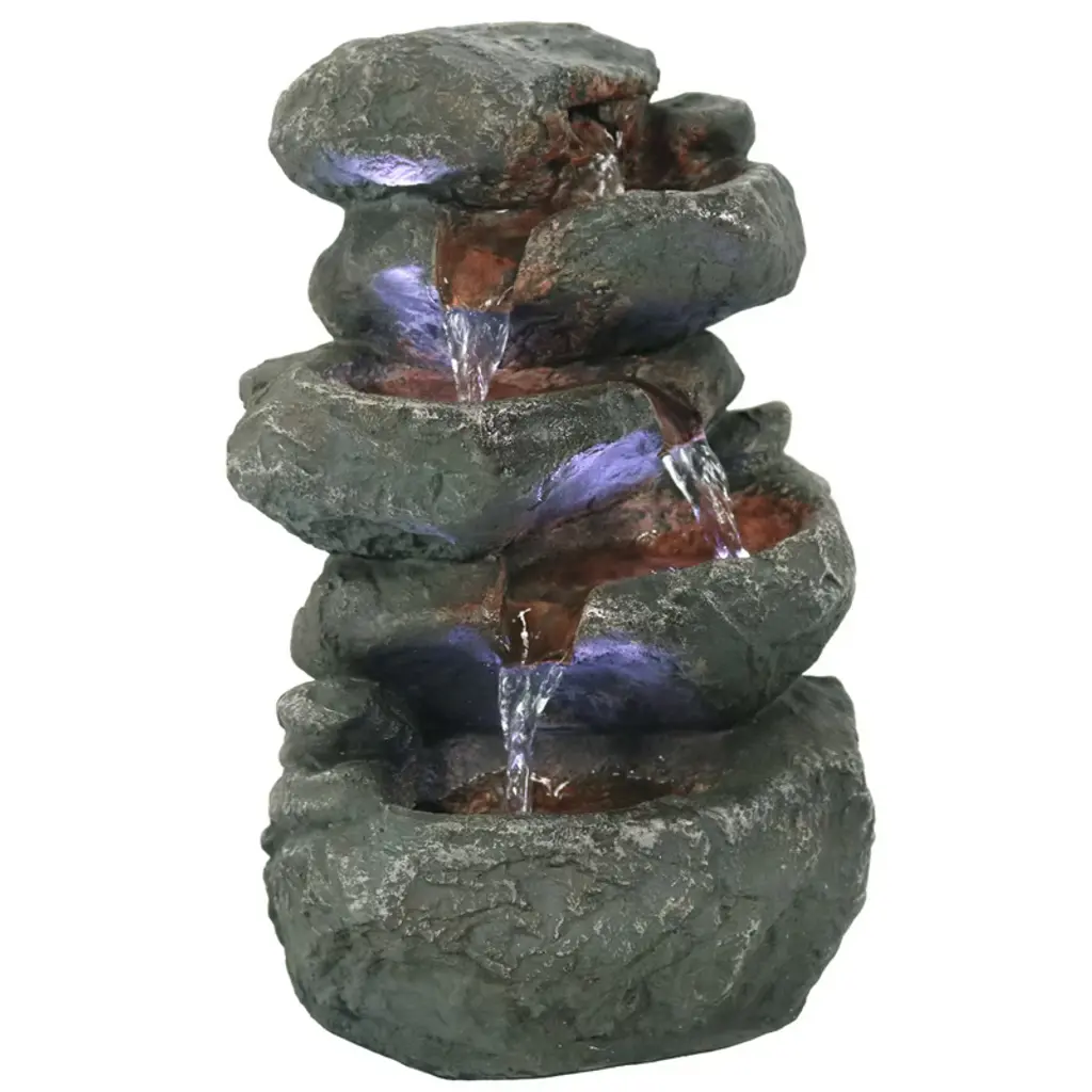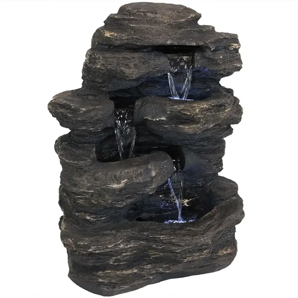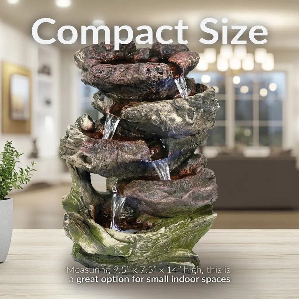 Sunnydaze Indoor Decorative Calming 5-step Rock Falls Waterfall Tabletop Water Fountain With Led Lights - 14"