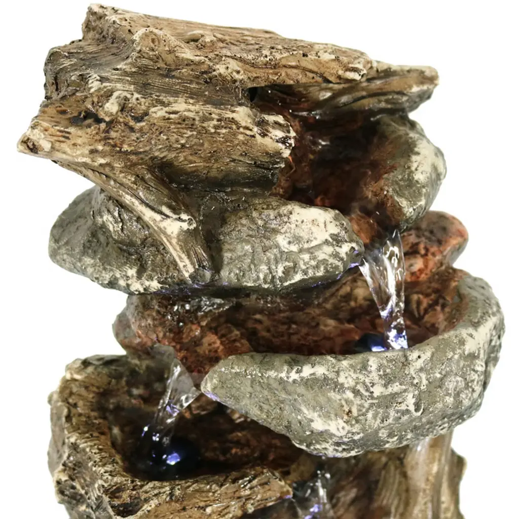 Sunnydaze Indoor Home Decorative Tiered Rock And Log Waterfall Tabletop Water Fountain With Led Lights - 10"