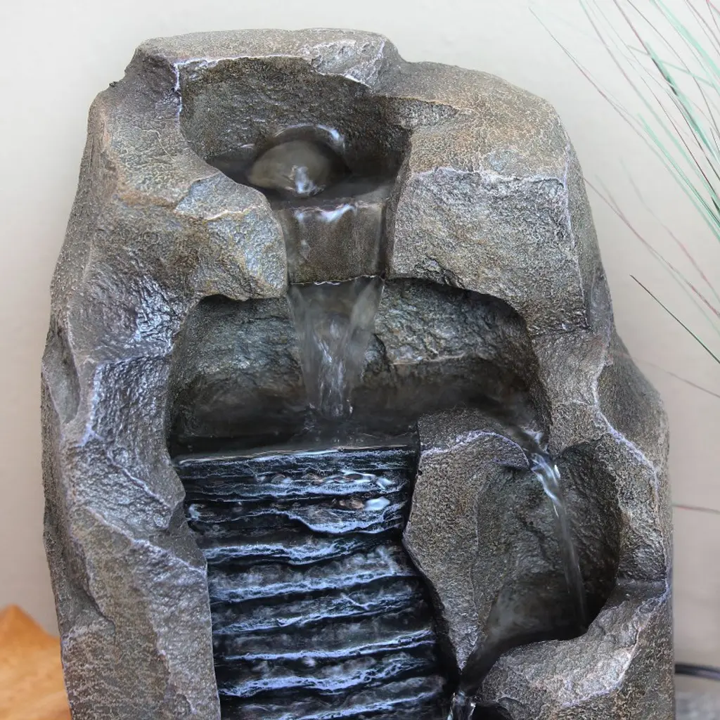 Make any personal space calmer and more tranquil with this tabletop water fountain. Durably constructed of easy-to-maintain resin, this fountain replicates the look, color, and texture of real stone. It is easy to keep clean, maintain, and move from place to place as well. This serene interior water feature is great for adding a little piece of nature to the home or office. The peaceful sound of running through the fountain will soothe any troubles and cares away. Plus, the included electric submersible pump makes the fountain easy to put together with no complicated plumbing or installation required. This striking piece of indoor decor will make a welcome addition atop any table, desk, or shelf. This unique fountain is a great addition to the bedroom, living room, or home office. Plus, this stylish tabletop fountain makes a wonderful gift for a wedding or house-warming party.• GREAT SIZE FOR HOME AND OFFICE: This personal fountain measures 6.75" W x 5.5" D x 11.5" H. It weighs 3.4 lbs and has a 3.5-cup water capacity. The hose diameter is 0.5". It features a 73" long power cord. This relaxing indoor water feature makes a welcome addition to a variety of spaces in the household.• LOOKS LIKE REAL STONE: This fountain is constructed of durable resin that replicates the color, texture, and look of stone. The material is easy to clean and maintain.• EASY TO SET UP: Everything to put this serene piece of decor together is in the box, including 1 indoor tabletop fountain and 1 electric submersible pump. No complicated plumbing is required with the included pump as it continuously circulates water through the fountain.• RELAXING SOOTHING INDOOR DECOR: Make the desktop in the office a little more serene with this indoor water feature. Simply watching the water continuously fall is a great way to slow down and enjoy a calm, quiet moment in a busy or hectic day. This decoration is wonderful for unwinding and being a little more mindful.• WORRY-FREE PURCHASING: Sunnydaze Decor backs its products with a 1-year manufacturer's warranty.