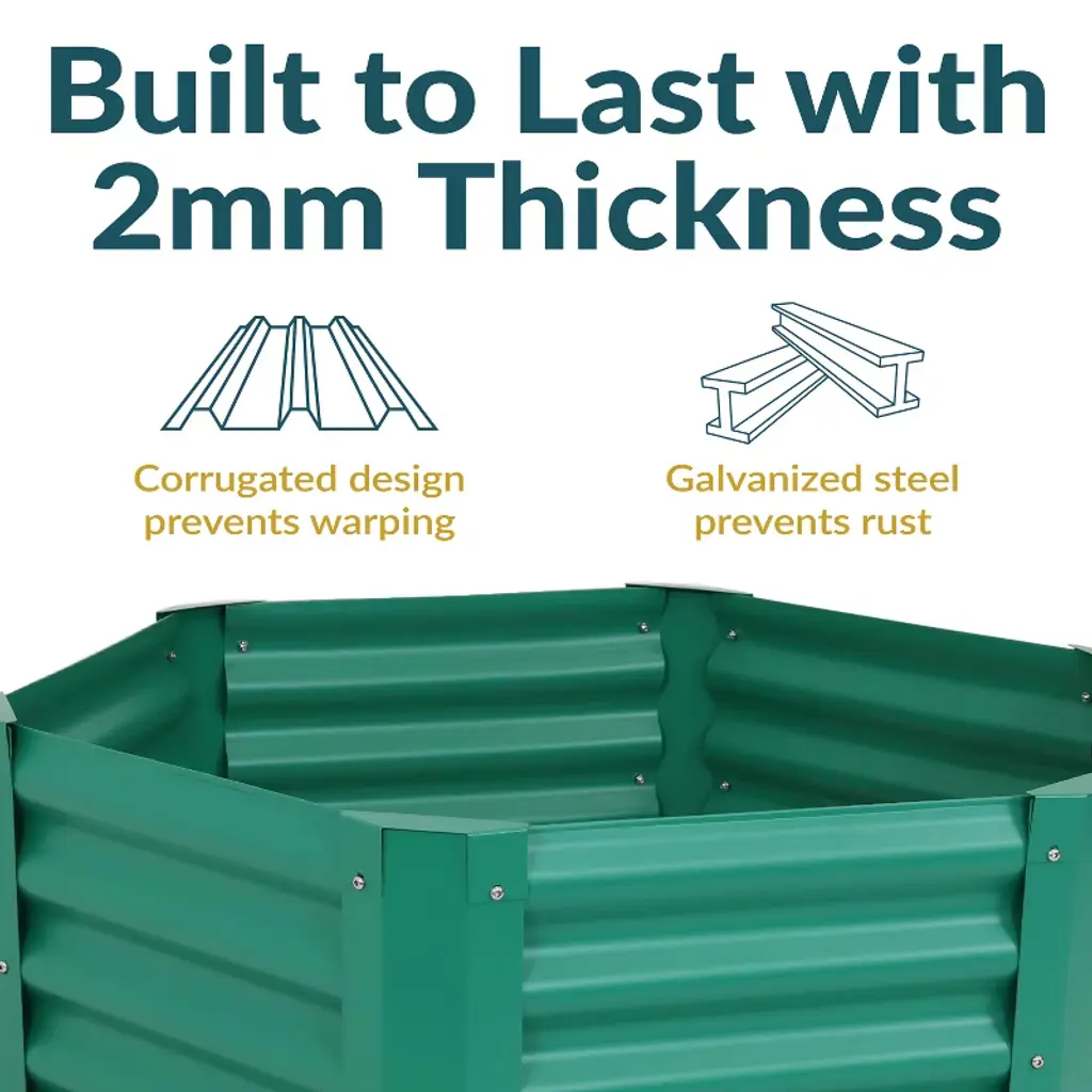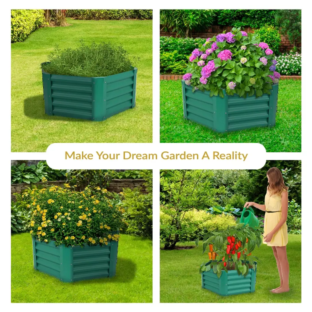 Sunnydaze Raised Powder-coated Hexagon Steel Garden Bed Kit For Plants, Flowers, Vegetables And Herbs - 41" W X 16" Deep - Green