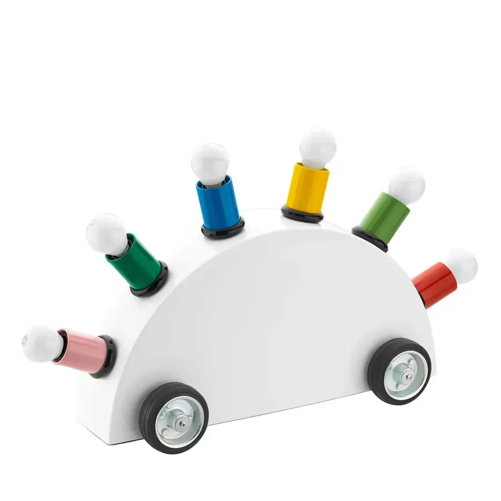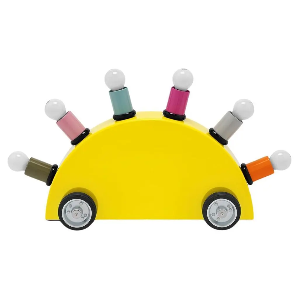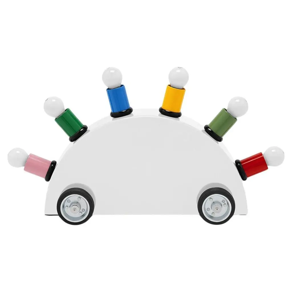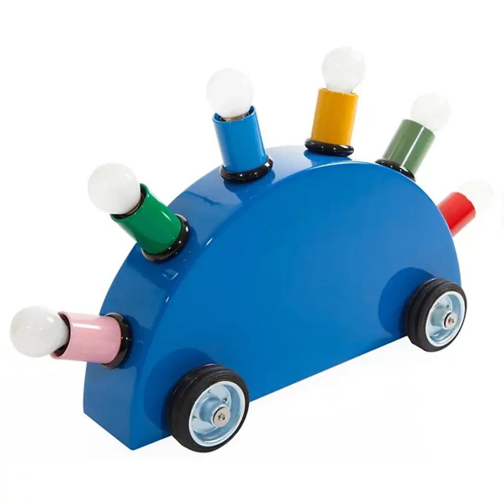 Here you are shown the US wired, Super Blue table or floor lamp in fiberglass, designed in 1981, by Martine Bedin. Color options also include: Yellow, White with Colored Sockets, and all White.EU VERSION 220v ALSO AVAILABLE IN ANOTHER LISTING Martine Bedin was born in Bordeaux in 1957. In 1981 she was one of the founding members of the Memphis group, she works as an architect, industrial designer and professor. Her works are exhibited in many museums and private collections.Memphis is the great cultural phenomenon of the 1980s that revolutionized creative and commercial logics in design. Born from the idea of Ettore Sottsass and a group of young designers and architects, in Milan, coupled in the years by famous designers from the international scene, Memphis turned upside down all of the existing parameters on living. Ettore Sottsass as the backbone of the group, design gained a new concept and expression through new shapes, materials and patterns, expanding the creative limits of the industry. Memphis became a symbol of New Design. Its influence is still clear in various sectors of production and beyond.Additional information:- Dimensions: L. 17.75" x H. 11.75" inches- Lighting info: Bulb E14, W 40. - Additional Lighting Info: Please note that this item is wired in 110 V for the standard US light socket. - Price includes additional US rewiring cost for accessibility with US outlets. - If you are interested in the EU version of this light, please refer to the dealers storefront for the (EU) wired light fixture.- Purchased products are shipped with forms of authenticity by Memphis Milano, as well as a metal plaque which contains the signature of the designer, and the year which the product was originally designed in.- Pricing: Prices do not include VAT.