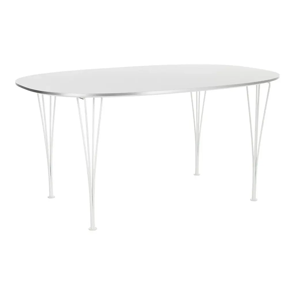 The table series includes the Super-Elliptical, the Super-Circular, circular, square and rectangular tables designed by Piet Hein, Bruno Mathsson, and Arne Jacobsen. The most prominent member of the series, the Super-Elliptical table, was inspired by the designer Piet Hein's solution to a traffic problem at Sergels Torg in Stockholm: A super elliptical roundabout. The ingenious shape was conceived in his mathematical mind. This variation of an oval possessed some attractive qualities and looked surprisingly harmonious no matter the size. The formula based shape has no ends and this is why the Super-Elliptical table can be seen as a democratic table where everyone has an equal position. Bruno Mathsson and Arne Jacobsen contributed to the base design of all the tables. This version of the Super-Elliptical features detachable legs in powder coated steel, available in three different color options: White, Black or Grey.