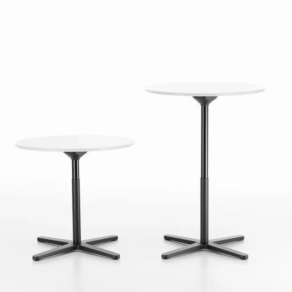 The Super Fold Table by Jasper Morrison folds up completely with a single movement of the hand, and the legs of the four-star base are also rotated and vertically aligned for compact space-saving storage. The Super Fold Table comes in a range of materials, with different shaped table tops. It is available in both sitting and standing height versions.