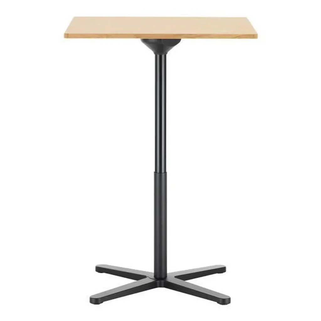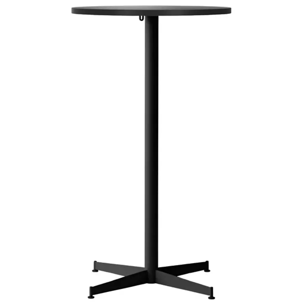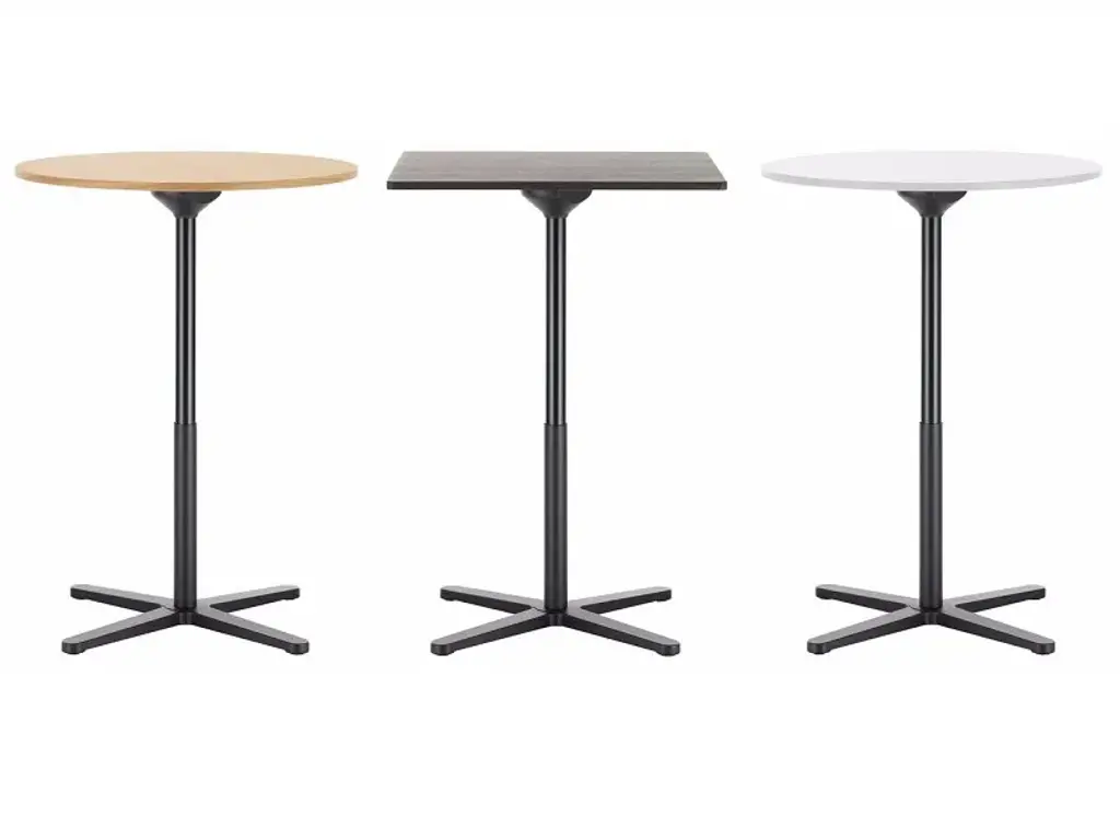 Museums, galleries, restaurants and similar institutions often require versatile tables that can be used in a variety of settings. Since such facilities tend to have limited storage space, a table type is needed that can be quickly and compactly stowed away and just as easily set up again. These needs are fulfilled to perfection by the Super Fold Table, making it an ideal choice for all meeting, event and food service locations where flexibility is key and furnishings are frequently rearranged in different layouts.The Super Fold Table folds up completely with a single movement of the hand. The mechanism not only tilts the table top into a vertical position but also simultaneously rotates and aligns the legs of the four-star base so that the whole table is reduced to a single plane just a few centimetres deep. The folding mechanism is activated by pulling on a recessed grip under the table top. The grip is easy to locate, thanks to a screw that discreetly marks its position on the corresponding side of the supporting column. Once folded, the recessed grip serves as a carrying handle, making it possible to transport the Super Fold Table with one hand.Materials:Table top: melamine faced in white with smooth straight plastic edge (19 mm), oak veneer (Europe) in natural or dark oak (19 mm) or solid core material with black edge (12 mm) in the colours white or black. Solid core table top in black with anti-fingerprint coating.Folding mechanism: die-cast zinc.Column: powder-coated steel in basic dark.Base: die-cast aluminium.