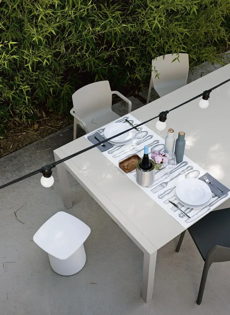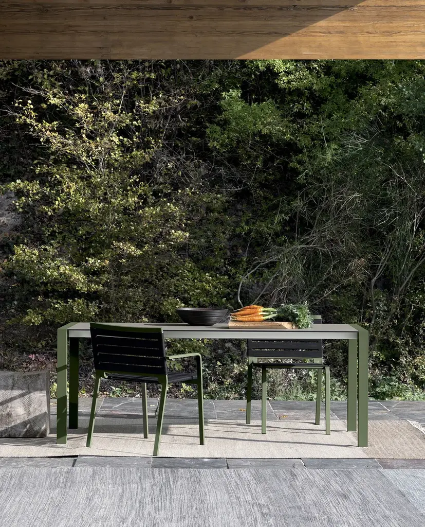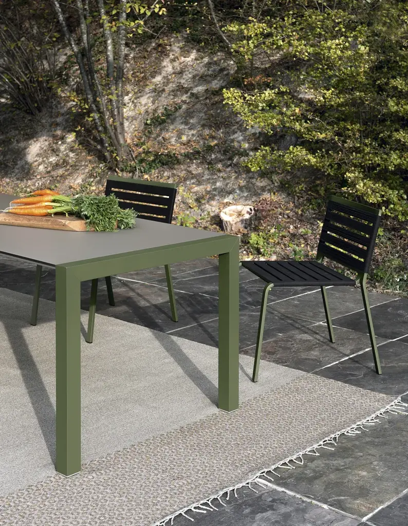 Simplicity and beauty, innovation and durability: Sushi is a furnishing philosophy expressed via a complete collection of fixed tables or tables with an original tried-and-tested extension system. The top, with a slimline profile, comes in cutting-edge materials: Fenix-NTM®, or DEKTON® by Cosentino. The large-volume frame and legs are available in anodized aluminium. Alternatively, they can be lacquered in the same colour as the top for the uni-colour version.The top is made of thin Fenix-NTM® slats: a material with warm and soft aesthetic, which is light, sturdy and resistant to weathering. The frame is made of anodized aluminium, an eco-friendly material ideal for outdoor use. In addition to a wide range of tables in different sizes, the collection includes a matching bench for use as a chair or a versatile furnishing accessory, which can be complemented with a Lips removable cushion (Not included).