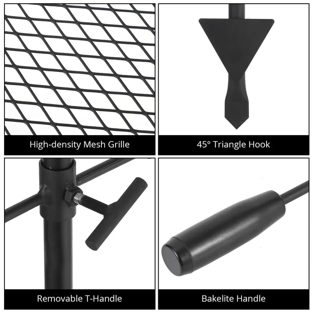 Swivel Campfire Grill Grate,22" X 15" Open Fire Grill Portable Camping Grill Stand & Camp Garbage Rack Durable Heavy-duty Steel For Outdoor Cooking