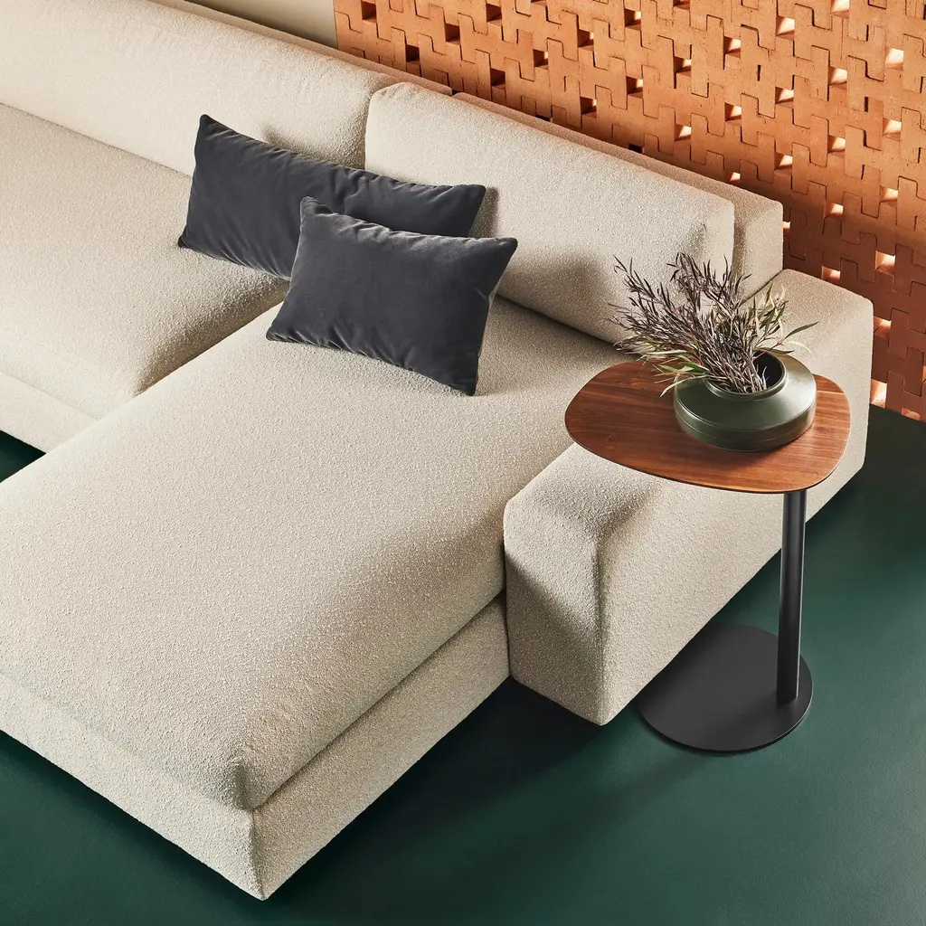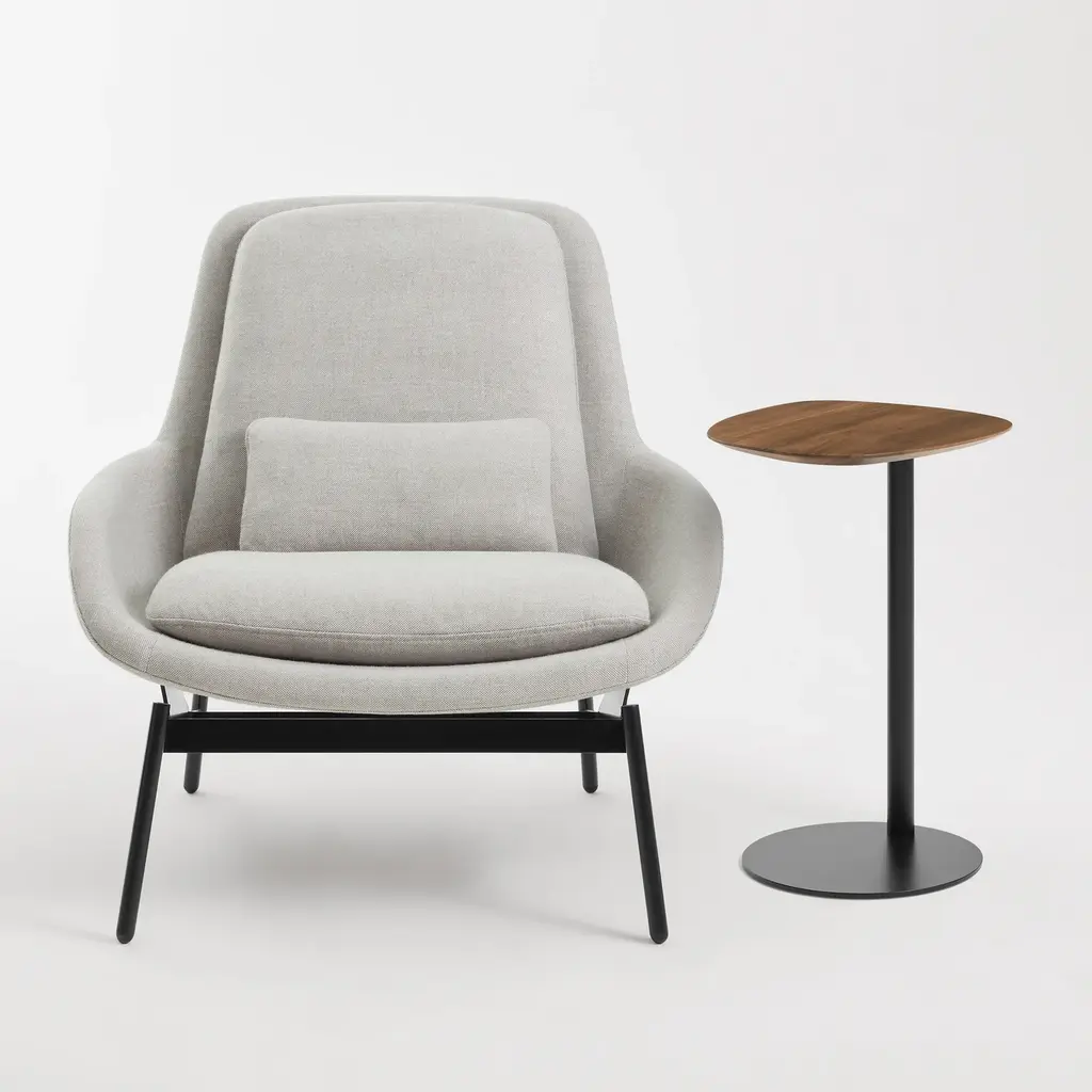 Always at the ready, this sturdy steel table’s cantilevered base makes it a cinch to pull up and tuck under a sofa, lounge chair or bed. Enjoy in full color or warmed up with wood. Gang with the rest of the Swole Collection to create a landscape of function and awesomeness.