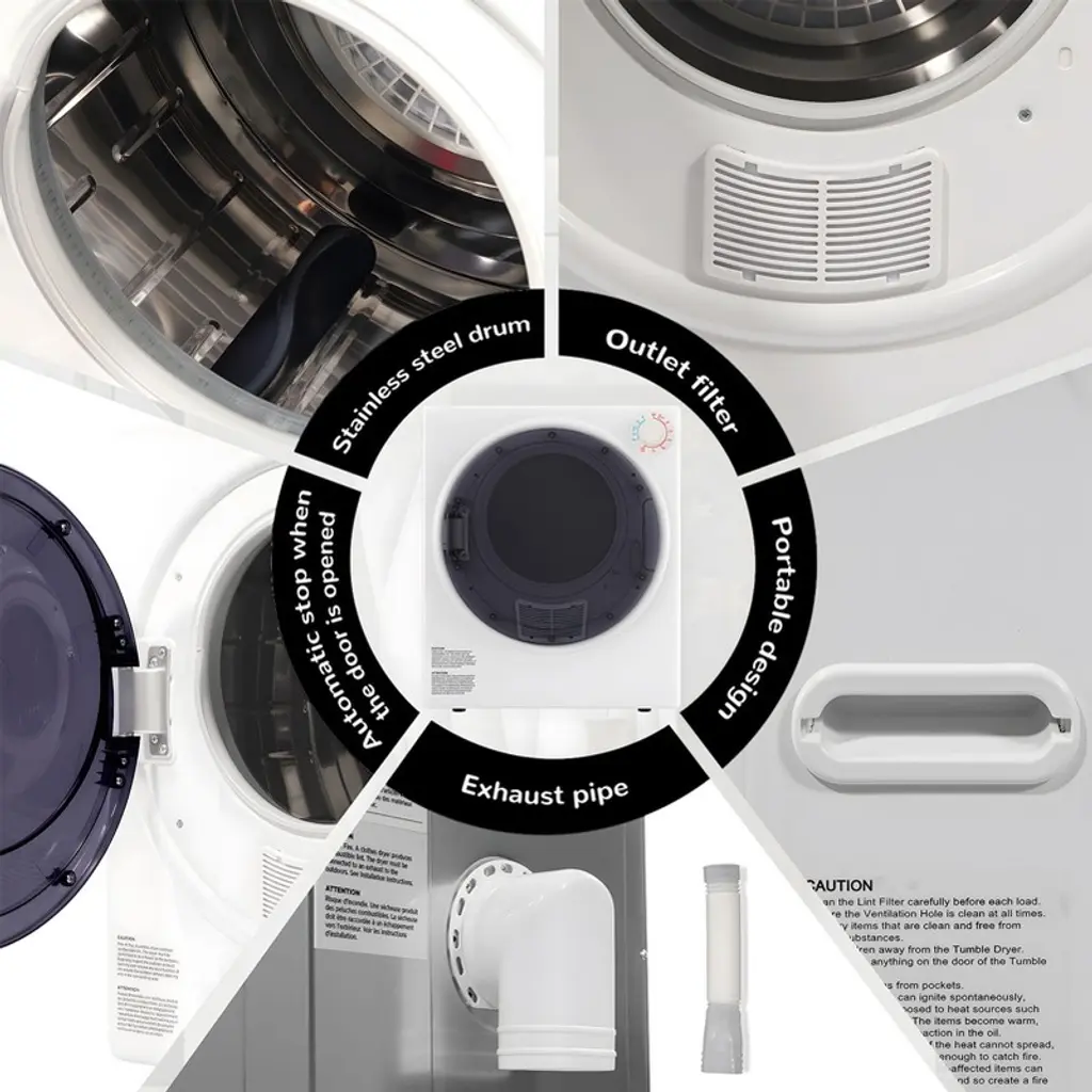 Swtroom Portable Clothes Dryers 1.95 Cu. Ft. Electric Dryers Machine Compact Laundry Dryers Apartments Home Dorm White