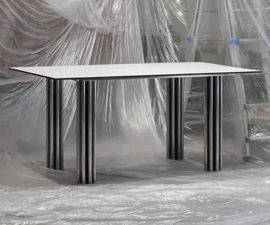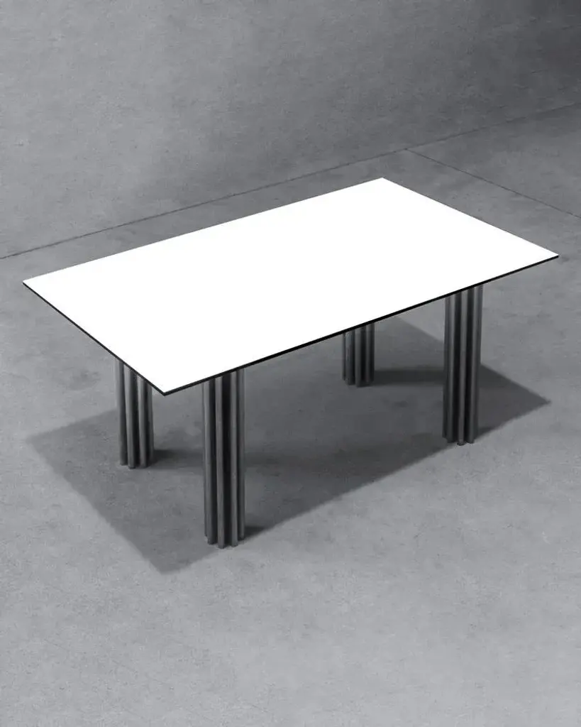 The elegant and sophisticated look of "T–T02" matches every space. The frame is designed to carry heavy weights and the flower-shaped legs are spaced to allow a versatile use. The table top is made of Fenix®, a revolutionary high-quality material, extremely resistant to scratches, low light reflectivity, anti-fingerprint surface and a soft-touch feeling. All Temper products are made of raw pickled iron. Please inquire with the Concierge for more options. Labeled by Maker