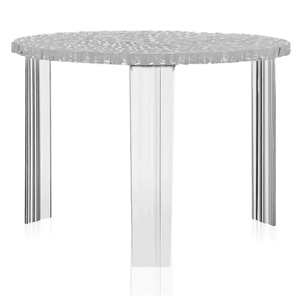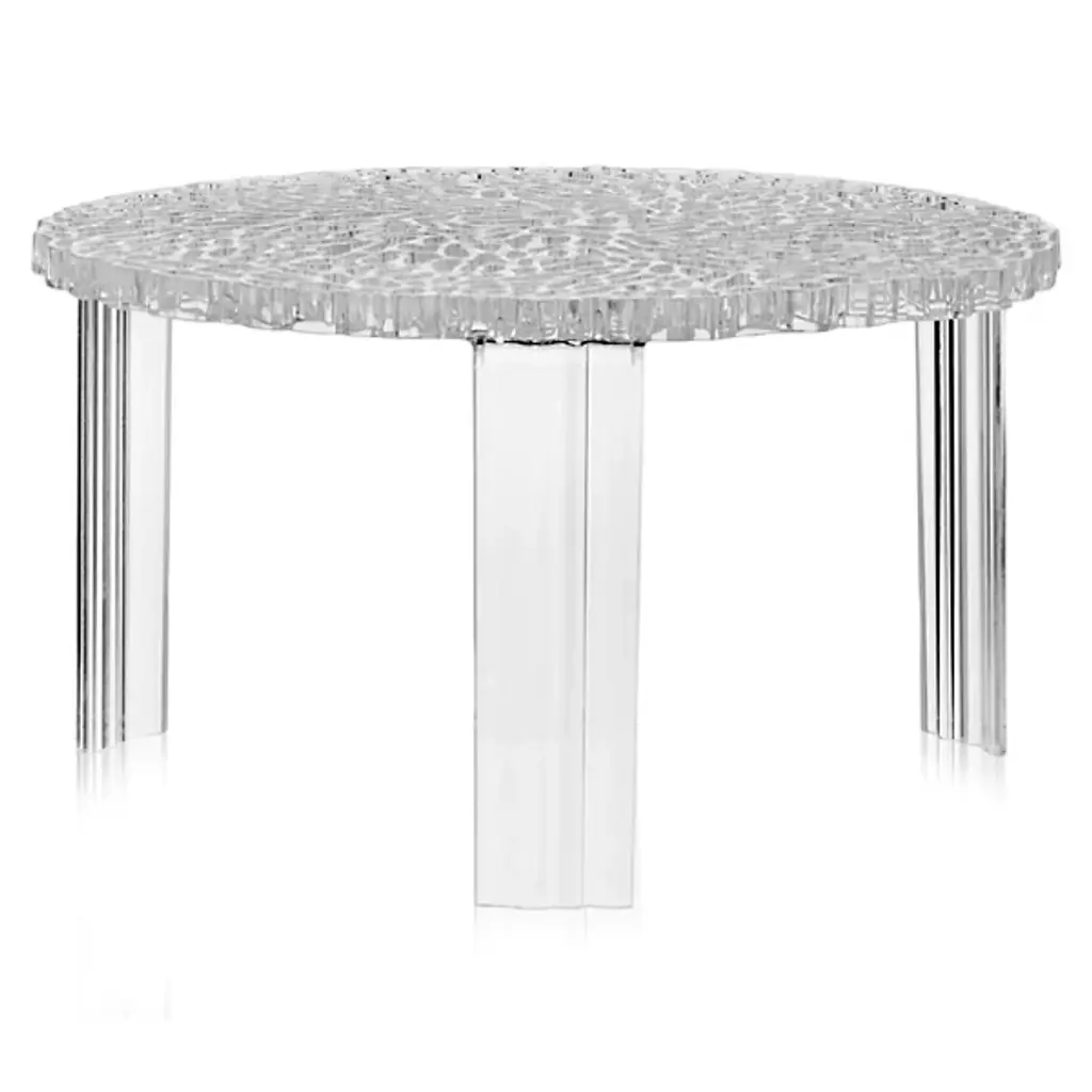 The Kartell T-Table is a line of tables originated from the creativity of Patricia Urquiola combined with Kartell's capability and technological know-how resulting in new visual and tactile effects. The surface of the T-Table top alternates fullness and space to create an elegant and precious effect which is reminiscent of embroidery. The object expresses very poetic, feminine and extreme elegance born from technological research and experimentaion. The T-Table is available in transparent and matte colors and comes in three different heights.