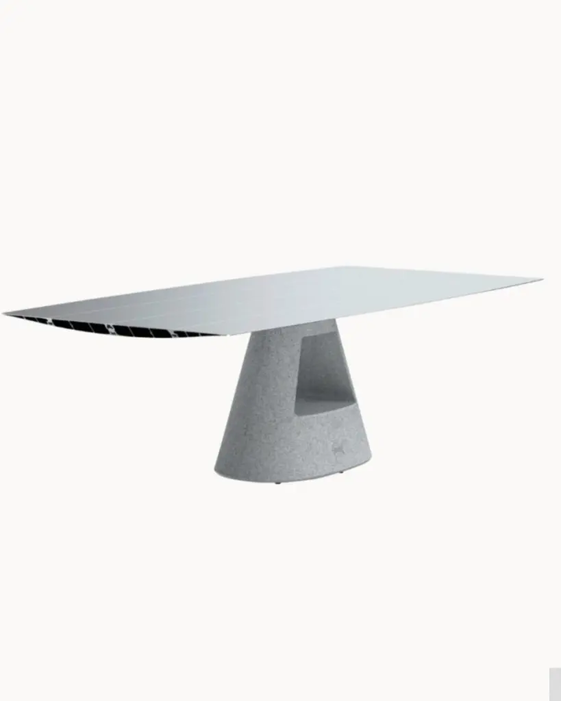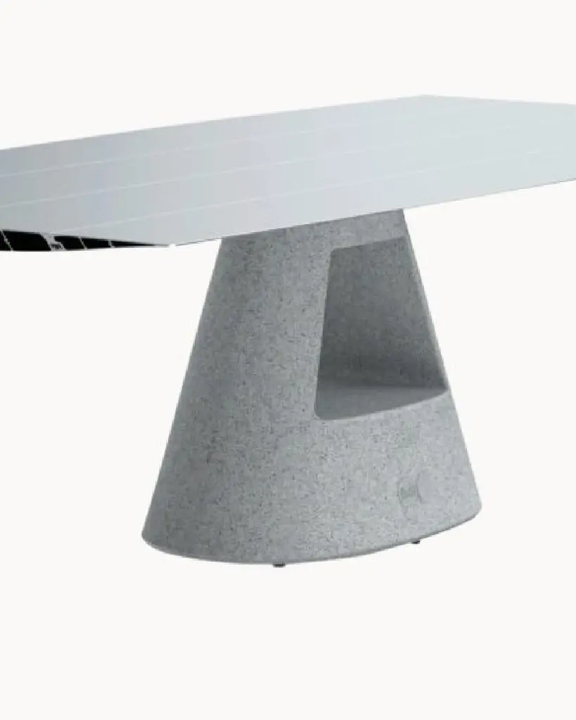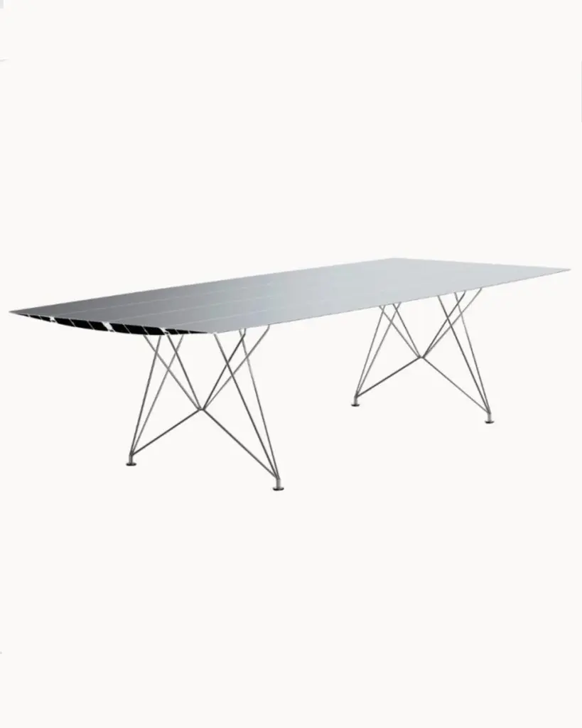 Table B by Konstantin Grcic for BD Barcelona. The Table B has become a classic design of the 21st century with lengths from 1.8m to 5m. The outdoor version can be installed with architectonic concrete leg(s) or stainless steel rod legs. Tabletop in extruded aluminum with open ends cut at 45º. There is an option available of the surface being laminated in a natural oak design with a varnished finish. There are three versions of leg designs: grey architectural concrete, stainless steel rod, and natural oak coated in transparent water-based varnish. Multiple configurations are available.Indoor use only.DIMENSIONSTABLE BW 47.24" x L 70.68", 94.49", 118.11", 141.73", 157.48", 196.85"W 120 x L 180, 240, 300, 360, 400, 500cmBIG TABLE BW 59.05" x L 118.11", 141.73", 157.48", 196.85"W 150 x L 300, 360, 400, 500 cmLEADTIME Most BD Barcelona products are made-to-order with a lead time of 4-6 weeks ex-factory; selected products may however be in stock. Please inquire with us for details.Curbside delivery included, please inquire for White Glove and/or Installation charges.The listing is for the W 120 x L 240cm / W 47.24"x L 94.49" version with wooden legs