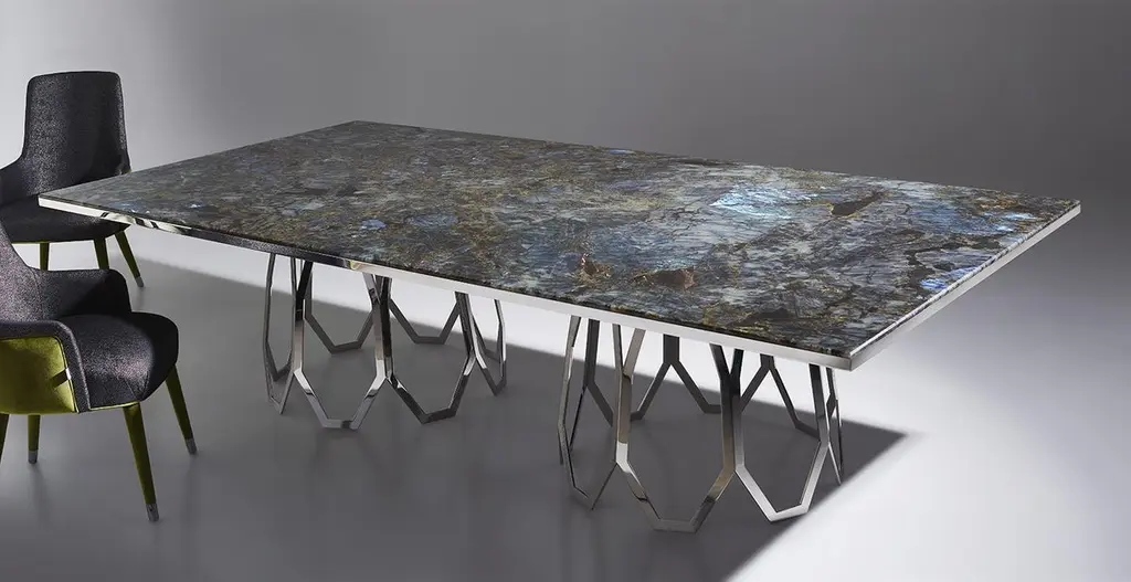 Table Frame Polished Stainless Steel Top Available Mirror Marble & Liquid Metal