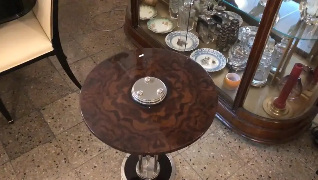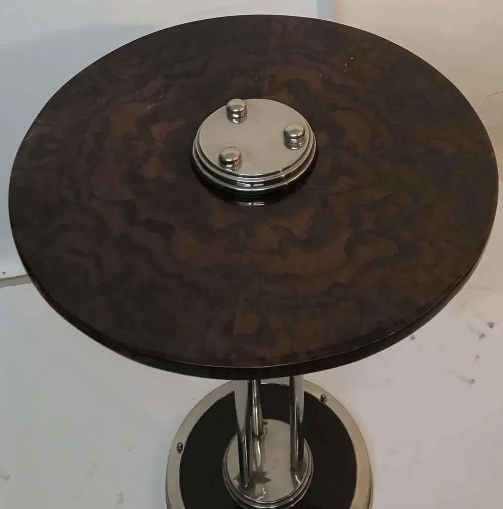 TableMaterial: Wood and chromeFranceWe have specialized in the sale of Art Deco and Art Nouveau and Vintage styles since 1982. If you have any questions we are at your disposal.Pushing the button that reads 'View All From Seller'. And you can see more objects to the style for sale.Why are there so many antiques in Argentina?In the 1880 – 1940 there was a grate wave of immigration encouraged by the periods of war that were taking place.1st World War took place between 1914 and 19182nd World War took place between 1939 and 1945 The immigrants options were New York or Buenos Aires. Tickets were cheap and in Buenos Aires they were welcomed with open arms, as it was a country where everything was still to be done.Argentina was the country of new opportunities, labour was needed and religious freedom was assured, in many cases the of the family travel first until they were settled and then the rest of the family members join them.In the immigrant museum “Ellis Island Immigrant Building” in New York you can se the promotional posters of the boats that would take them to a new life.Between the years 1895 and 1896, Argentina had the highest DGP (gross domestic product) per capita in the world according to the Maddison Historical Statistics index, this situation arose due to the large amount of food being exported to European countries, which were at war.The Argentinean ships left the port of Buenos Aires with food, but they returned with furniture, clothes and construction elements, (it´s common to see this the old buildings of the historic neighbourhood of San Telmo, the beams with the inscription “Made in England)”, as well as many markets that were built in Buenos Aires, such us the San Telmo Market, whose structure was brought by ship and afterwards assembled in 900 Defensa Street. With the great influence of European immigrants living in the country, the children of the upper classes travelled to study in France, resulting in the inauguration of “La Maison Argentinienne”, on 27th of June 1928, in the international city of Paris, which hosted many Argentinians that were studying in Frace. It´s the fourth house to be built after France, Canada and Belgium, being the first Spanish-speaking one. Still in place today (17 Bd Jourdan, 75014, Paris, France). Many of the children of these wealthy families who attended international art exhibitions, museums and art courses abroad, took a keen interest in the European style. This is why Buenos Aires was at the time referred as “The Paris of South America”.Between the years 1890 and 1920 more than a hundred Palaces were built on Alvear Avenue the most exclusive avenue in Buenos Aires. Today some of these palaces have been transformed into museums, hotels and embassies.In the year 1936, the Kavanagh building was inaugurated, it was the tallest reinforced concrete building in South America.During 1994 the American Society of Civil Engineers distinguished it as an “international engineering milestone”, and it´s now considered a World Heritage of Modern Architecture.At the time was common to hire foreign architects such as Le Corbusier, who visited Buenos Aires/Argentina in 1929 and in 1948 he drew up the blueprints for a house built in La Plata City (which was declared a World Heritage Site).In 1947, the Hungarian architect Marcelo Breuer designed “Parador Ariston” in the seaside city of Mar del Plata. After an Argentinean student at Harvard University convinced him to come to Argentina. He worked on an urban development project in the Casa Amarilla, area of La Boca. The Ukrainian architect, Vladimiro Acosta, arrives in Argentina in 1928 and worked as an architect until que moved to Brazil.Antonio Bonet, a Spanish architect who worked with Le Corbusier in Paris, arrives in Argentina in 1937, where he carried out several architectural works and in 1938 designs the well-known BFK chair.Andres Kálnay, of Hungarian origin, made around 120 architectural masterpieces, among which the former Munich brewery stands out, he even made the furniture’s design. The German architect, Walter Gropius, director of the Bauhaus, lived in Argentina, where he wrote articles for “Sur” magazine and founded in Buenos Aires, an architectural firm with Franz Möller, who was also an architect, where he built two houses.At the same time several famous designers decided to immigrate to Argentina, among them we can find the well-known French designer, Jean-Michel Frank, who arrived in the country in 1940 and also worked for the Rockefeller family.Special pieces were made, which were sold exclusively in the country, such as the well-known German company “WMF”, who sold their products by catalogue, which were chosen by the ladies of high society in the list of wedding gifts, as well as the pieces designed by Christofle. The Swiss sculptor Alberto Giacometti, made special pieces for Argentinean mansions.In 1904 the first Jansen branch outside Paris was established in Buenos Aires, as the Argentinean clientele demanded a large amount of furniture, from the end of the 19th century to the mid-20th century.In 1970, the brand Rigolleau Argentina made pieces authorised by Lalique.The brands Maple and Thompson also set up shop in the country.The French plastic artist, Marcel Duchamp moved to Argentina in 1918-1919.Glass signed Gallé, Charder, Leverre, Schneider, Muller and other French firms. They were bought in flower shops and were given to ladies with beautiful floral arrangements. Some furniture manufacturers travelled to international fairs and bough the patterns to produce the furniture in Argentina, such as the furniture firm Englander and Bonta, who bought the patterns ins Italy.It is worth mentioning that in Argentina we have the largest community of Italians outside of Italy, as it is estimated that 70 percent of the inhabitants have at least one Italian descendant, followed by Spanish immigrants.The most Important furniture stores in Argentina:
