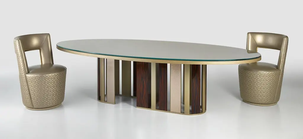 Table Metal Frame Champagne Finish And Polish Ebony Top Vetrite Customizable