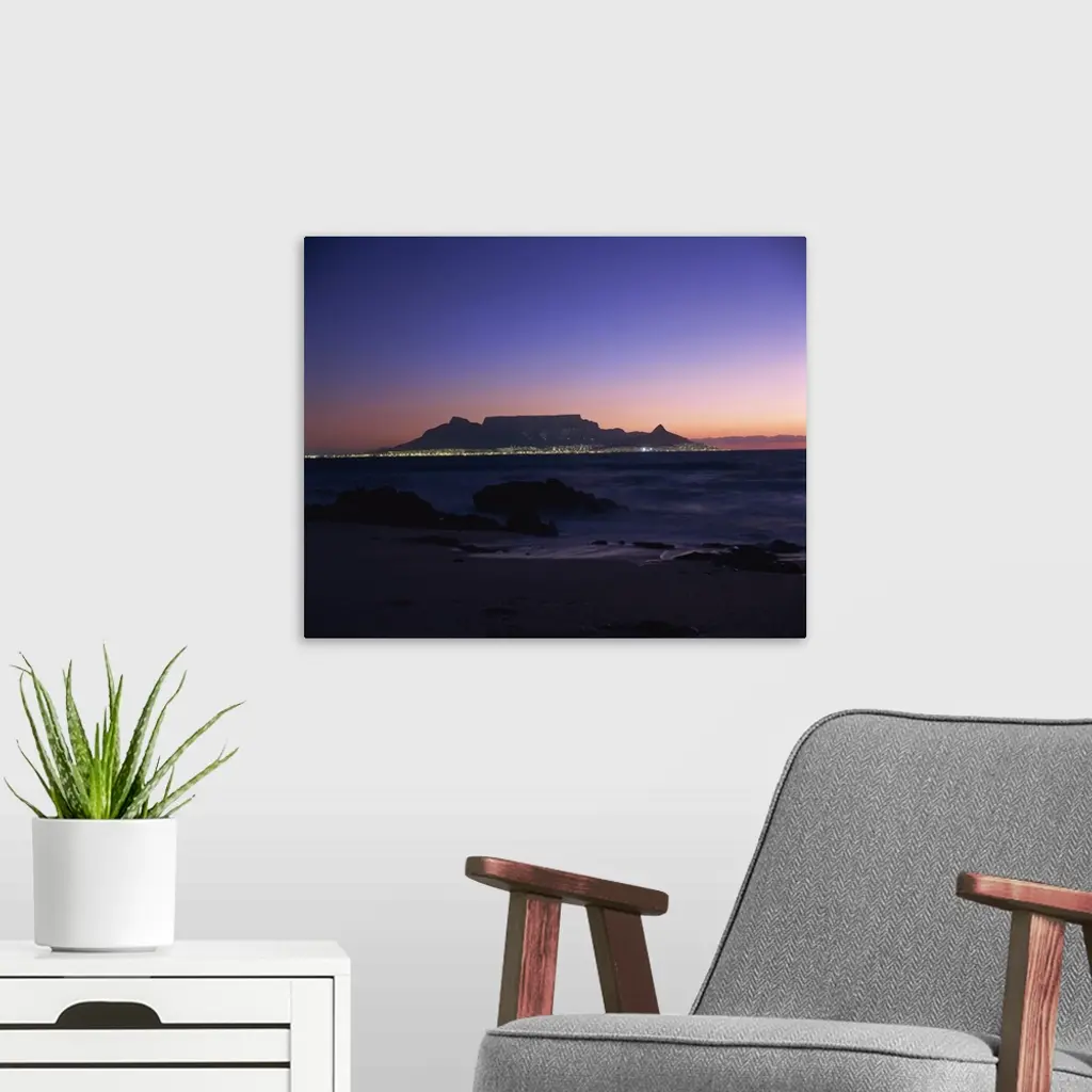 Table Mountain at dusk, Cape Town, South Africa, Africa wall art for home and office decor. Discover canvas art prints, photos, mural, big canvas art and framed wall art in GreatBigCanvas.com's varied collections.