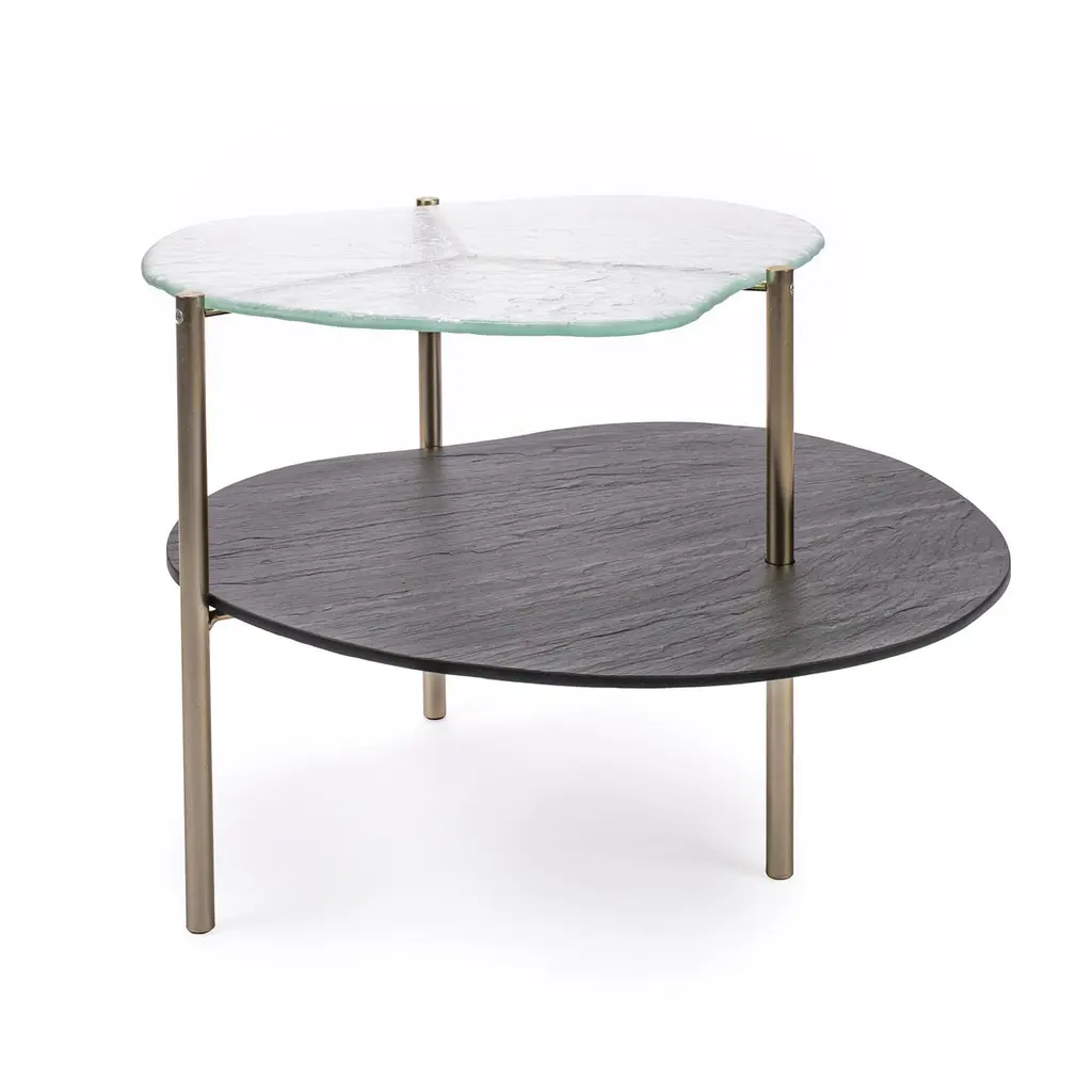Table no.4 by Anežka ZávadováMaterials: Polished slate stone and steel skeleton in satin brass finishDimensions: 51.8 x 53.2 x 39.8 cmAnezka Zavadova has been with Preciosa Lighting, since 2016. As a senior designer in the company’s Middle East affiliate, she works with architects and designers across the region to develop the specific design and light solutions. Her strength lies in her ability to conceptualize and create memorable lighting installations that fit a space’s size, usage and style. In her work, she likes to combine industrial procedures that seek to enrich her artistic approach. Some of her more notable projects include the Mandarin Oriental in Dubai, Atlantis at The Palm and Jumeirah at Saadiyat Island Resort, Abu Dhabi. She has degrees in both industrial and product design.