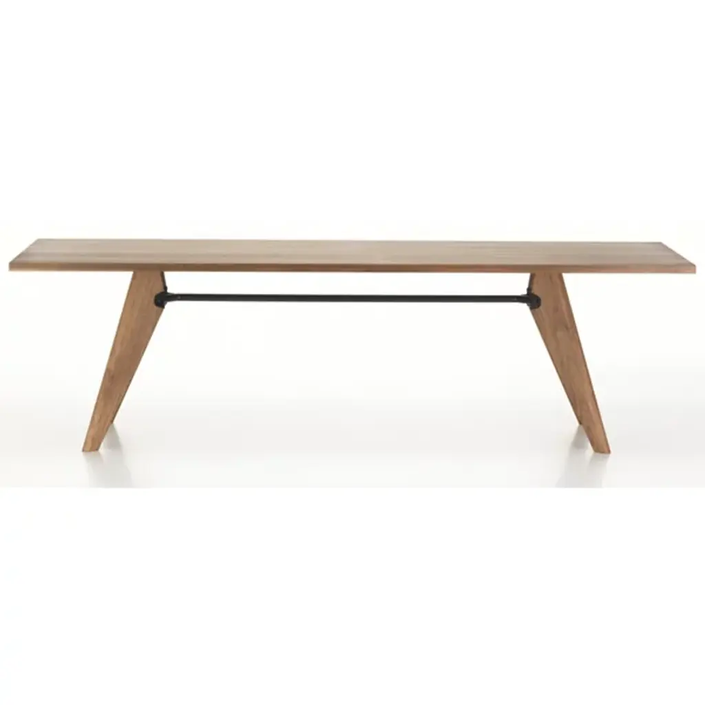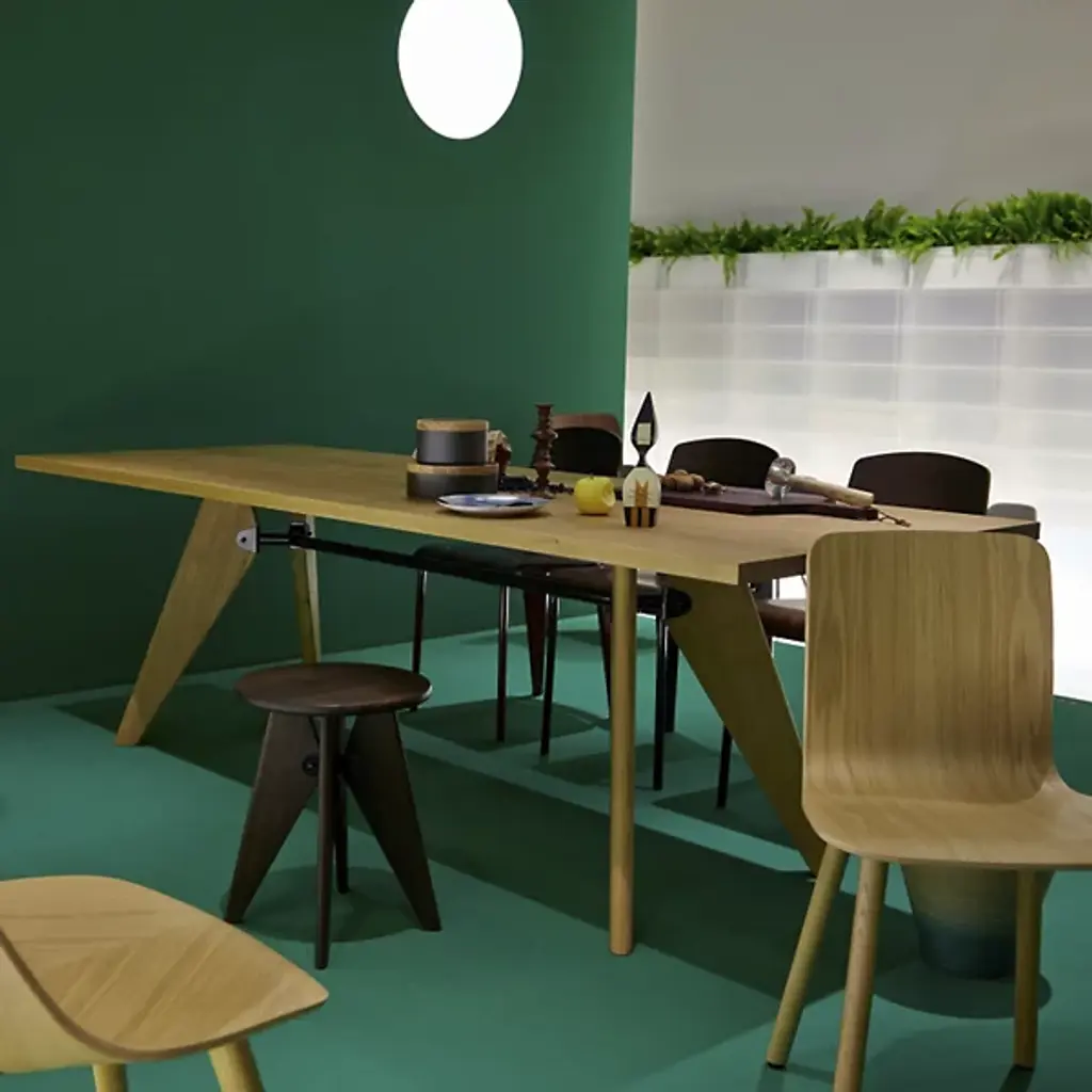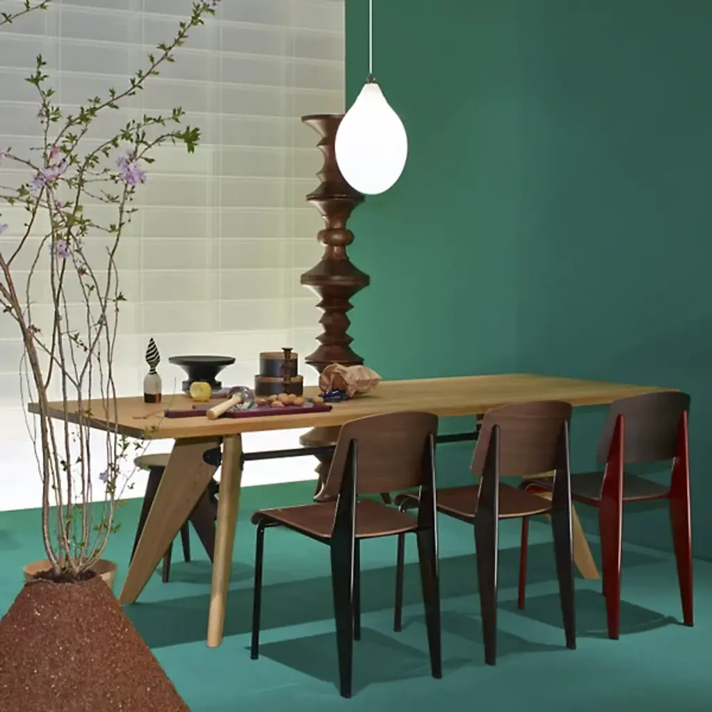 Jean Prouve is best known for his angular sheet steel furniture. However, when he designed the Vitra Table S.A.M. for the Solvay chemical company in 1941, Prouve used mostly solid wood (out of necessity due to metal shortages during WWII), with a central Black steel strut. The result is just as beautifully sculptural and structurally sound as his mostly steel pieces.