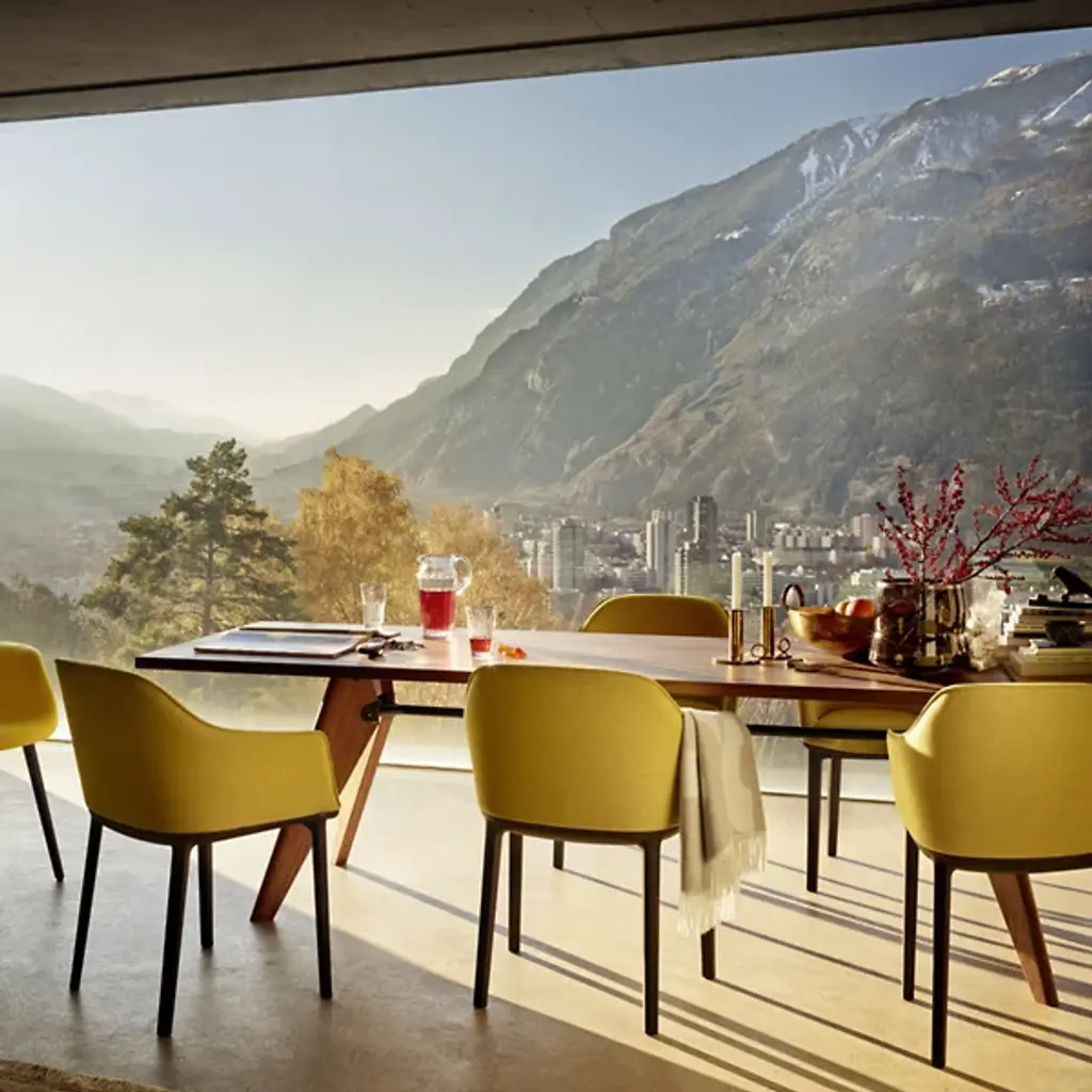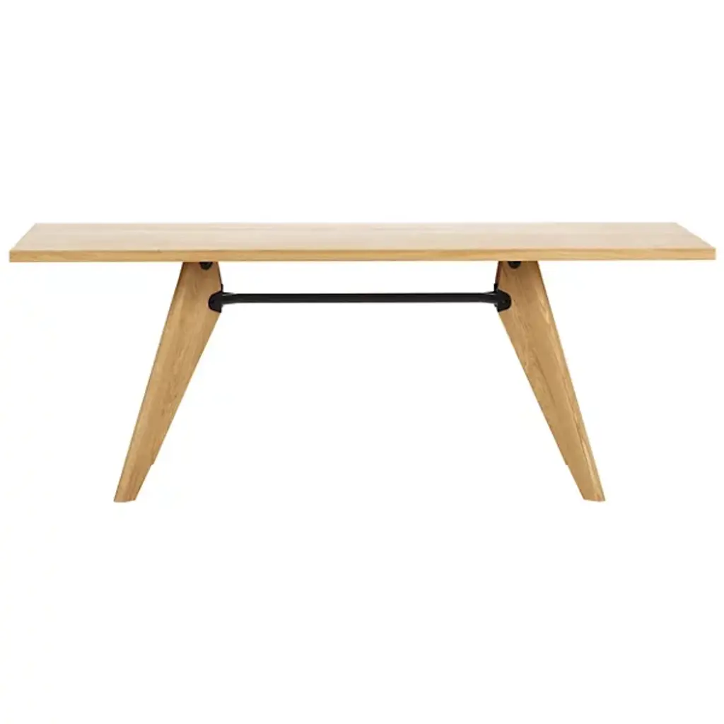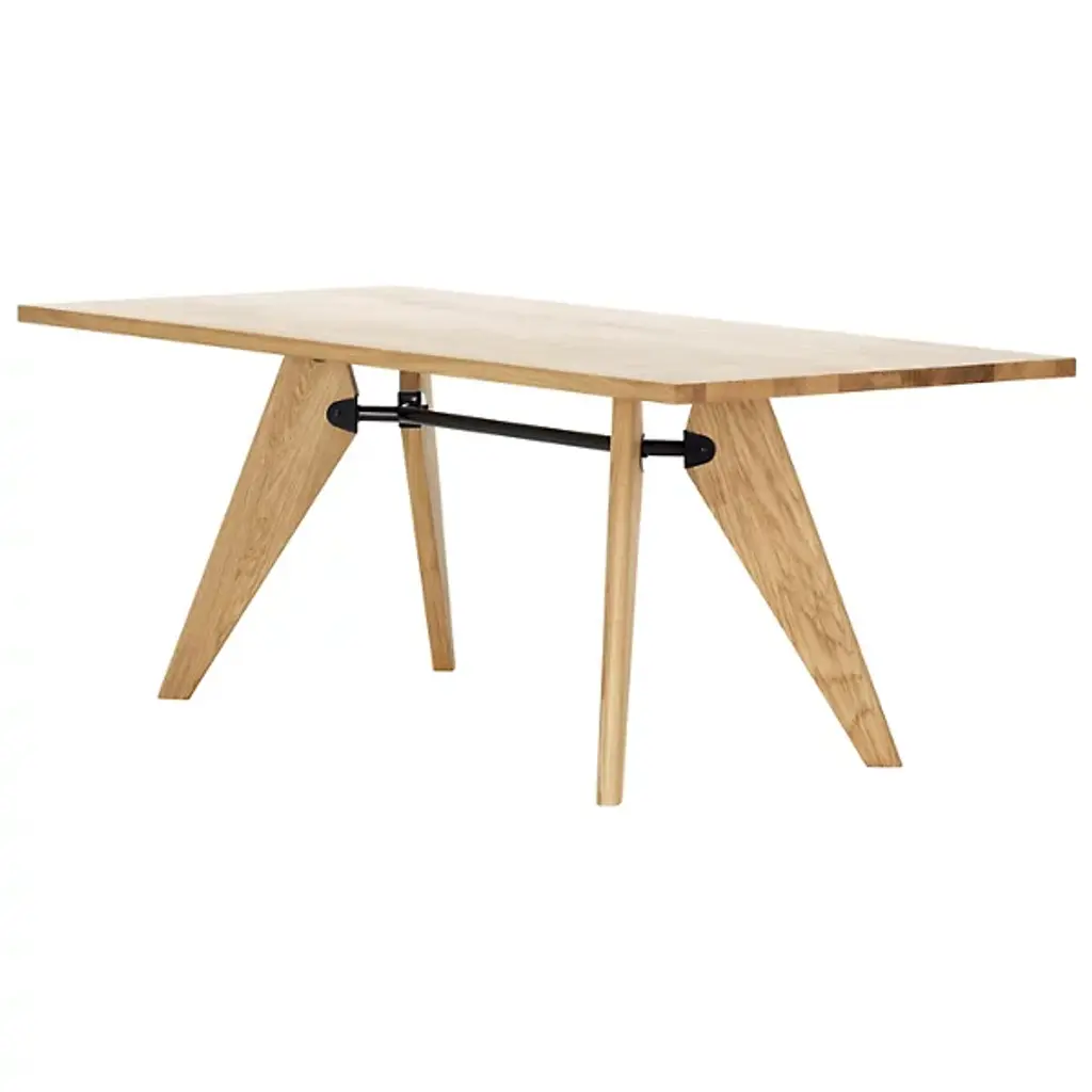Jean Prouve is best known for his angular sheet steel furniture. However, when he designed the Vitra Table S.A.M. for the Solvay chemical company in 1941, Prouve used mostly solid wood (out of necessity due to metal shortages during WWII), with a central Black steel strut. The result is just as beautifully sculptural and structurally sound as his mostly steel pieces.