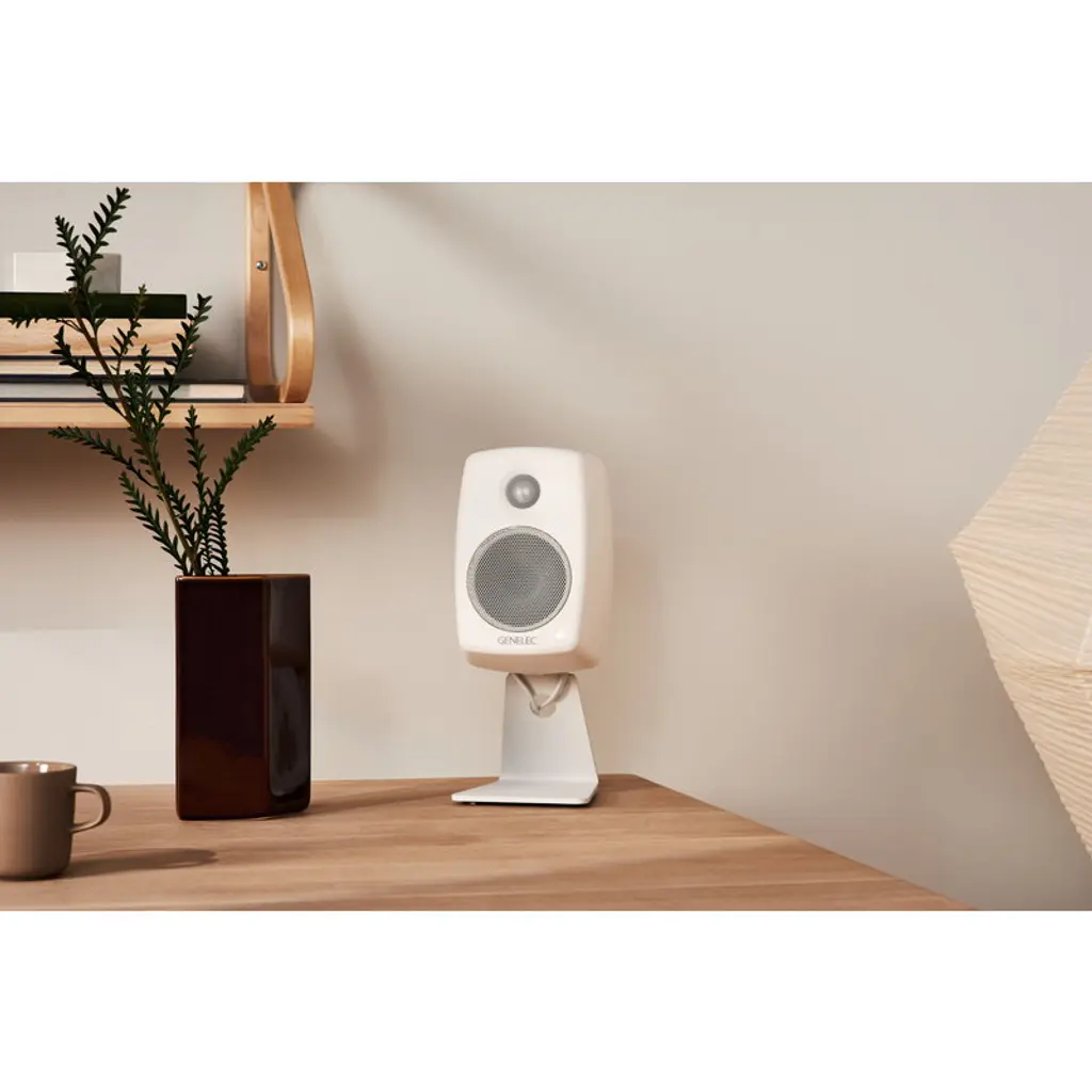 Designed for Genelec's G One speaker, this table stand ensures that you can make full use of the features of your loudspeaker – the quality of sound is greatly affected by the speaker's placement. The stand helps to keep the sound from reflecting from nearby surfaces and eliminates sound distortion caused by the comb filtering effect. The metal stand allows the speaker to be placed at the optimal height, for example on a desk or on a TV stand, and its integrated tilt function allows you to turn the speaker towards the listening position. This is an upgraded model of the table stand. In comparison to the previous model, the stand's color now closely matches the shade of the speaker.