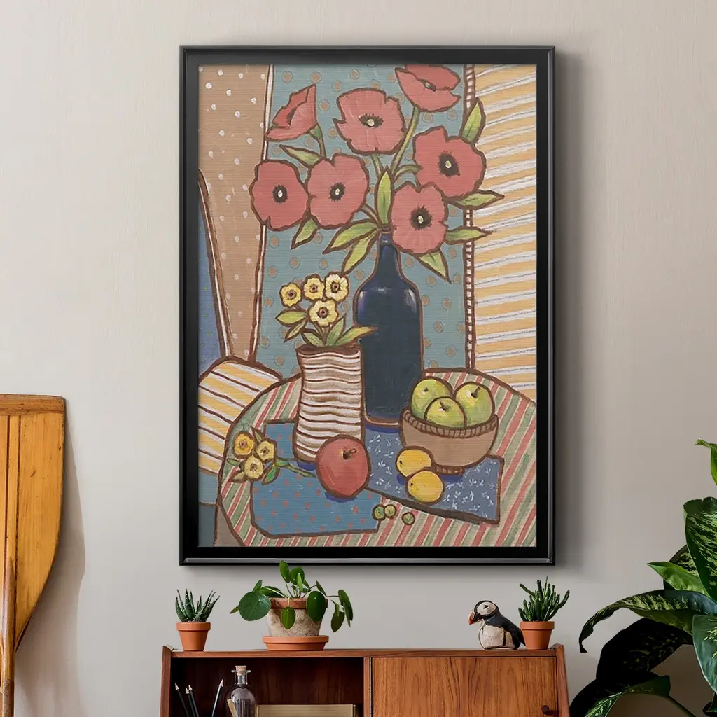 Table Still Life I Premium Framed Print - Ready to Hang A Premium Framed Print created to last. Framed in distressed wood and available in an array of sizes and colors Featuring a beveled a solid wood stretcher bar, each piece comes ready to hand 4 SIZES AVAILABLE 30.5''X42.5'' - Overall Size 26.5'X36.5'' - Overall Size 22.5''x30.5'' - Overall Size 18.5''x24.5'' - Overall Size Each piece is made to order. Each piece comes with hanging hardware. Made in the USA Ready to Hang