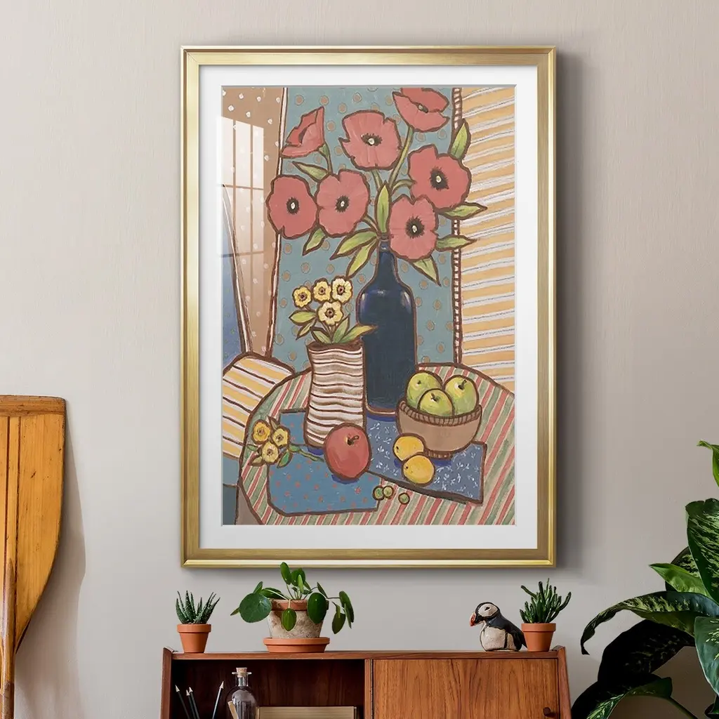 Table Still Life I Premium Framed Print - Ready to Hang A Premium Framed Print created to last. Framed in distressed wood and available in an array of sizes and colors Featuring a beveled a solid wood stretcher bar, each piece comes ready to hand 4 SIZES AVAILABLE 30.5''X42.5'' - Overall Size 26.5'X36.5'' - Overall Size 22.5''x30.5'' - Overall Size 18.5''x24.5'' - Overall Size Each piece is made to order. Each piece comes with hanging hardware. Made in the USA Ready to Hang Giclee Paper Print Acrylic Glass Beveled Matt Board