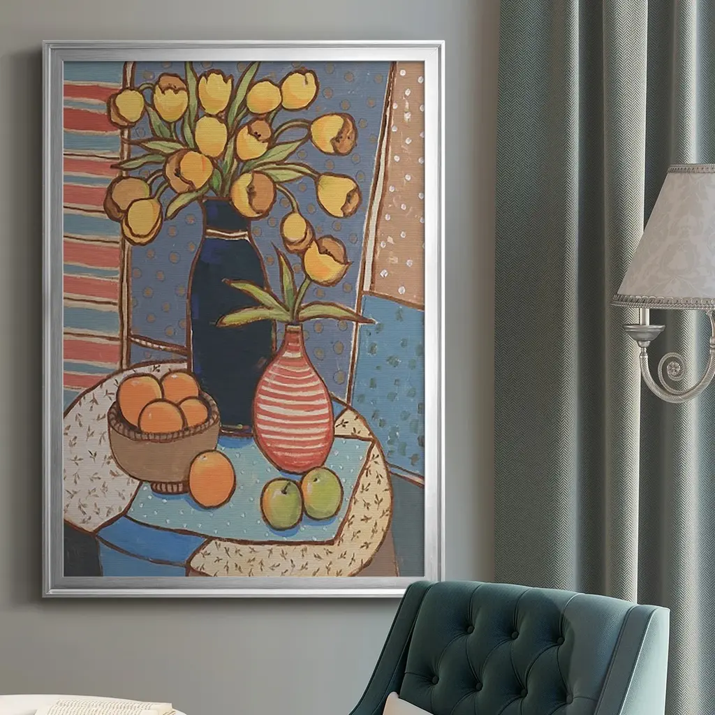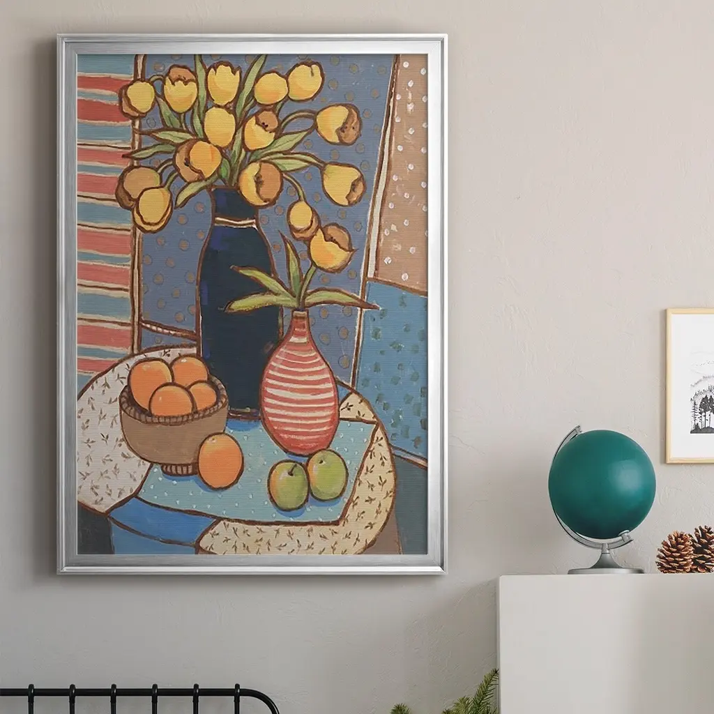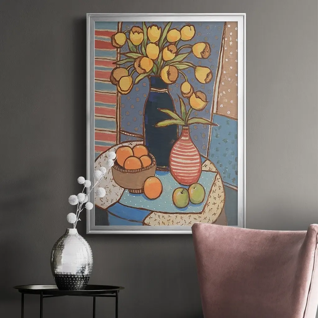Table Still Life II Premium Framed Print - Ready to Hang A Premium Framed Print created to last. Framed in distressed wood and available in an array of sizes and colors Featuring a beveled a solid wood stretcher bar, each piece comes ready to hand 4 SIZES AVAILABLE 30.5''X42.5'' - Overall Size 26.5'X36.5'' - Overall Size 22.5''x30.5'' - Overall Size 18.5''x24.5'' - Overall Size Each piece is made to order. Each piece comes with hanging hardware. Made in the USA Ready to Hang