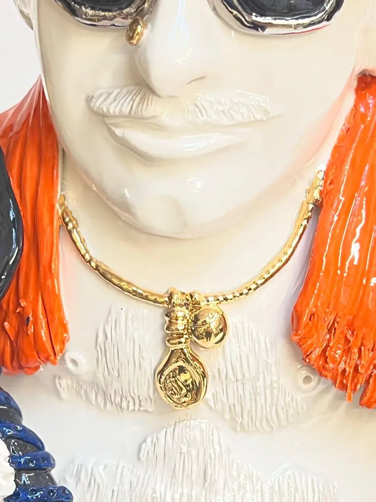 The piece is a unique representation of a man in a modern way. The man is gently painted with acrylic color. Every piece is handmade without mold!Our designer creates these pieces completely by hand, without any mold. Any piece is different and created by the sapient hands of the artisans.They live in Umbria, a wonderful region in Italy.The technic is helded sapiently by the artists, who create every piece working the raw materials by hands. No mold is used. Every creation has a different look and every piece is unique. The artist can replicate the piece changing also the colors in the palette.We love Made in Italy, the world of beauty and we promote it all over the world!Have yourself a beautiful made in italy creation!