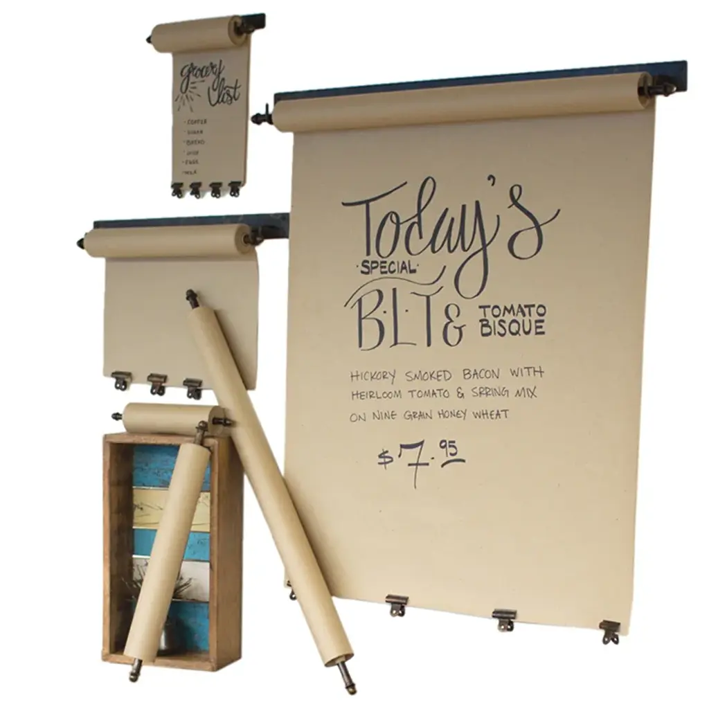 Need a place to jot down a note or list? The handy wood and brass stand is ideal for use on a desk, next to a chair, or in the kitchen.