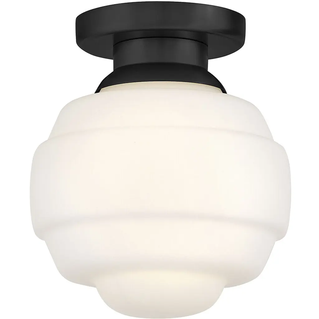 Defined by its signature glass shade with undulating, circular lines, the Tableau series embodies modern classic design. Mixing metal with clear or textured volcanic glass, these unique forms create elegant flush mounts and sconces that are ideal for any space. The Tableau Medium Flush Mount offers a sophisticated touch, seamlessly blending into various interiors while providing a refined aesthetic.