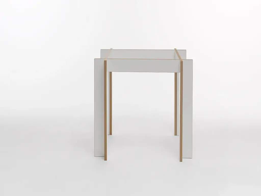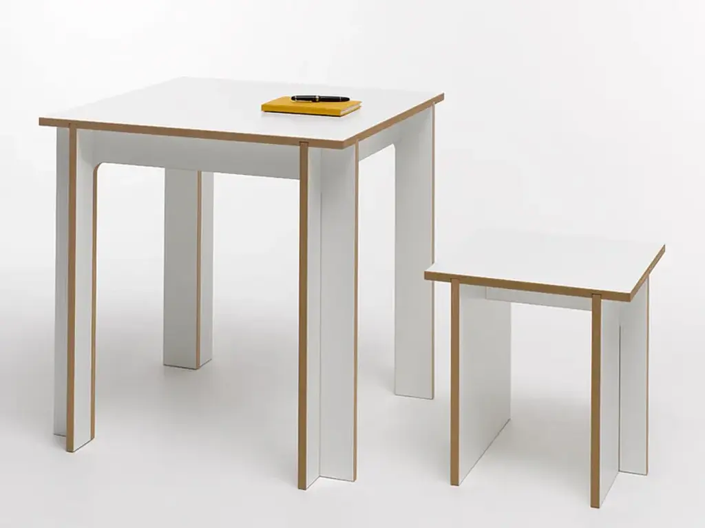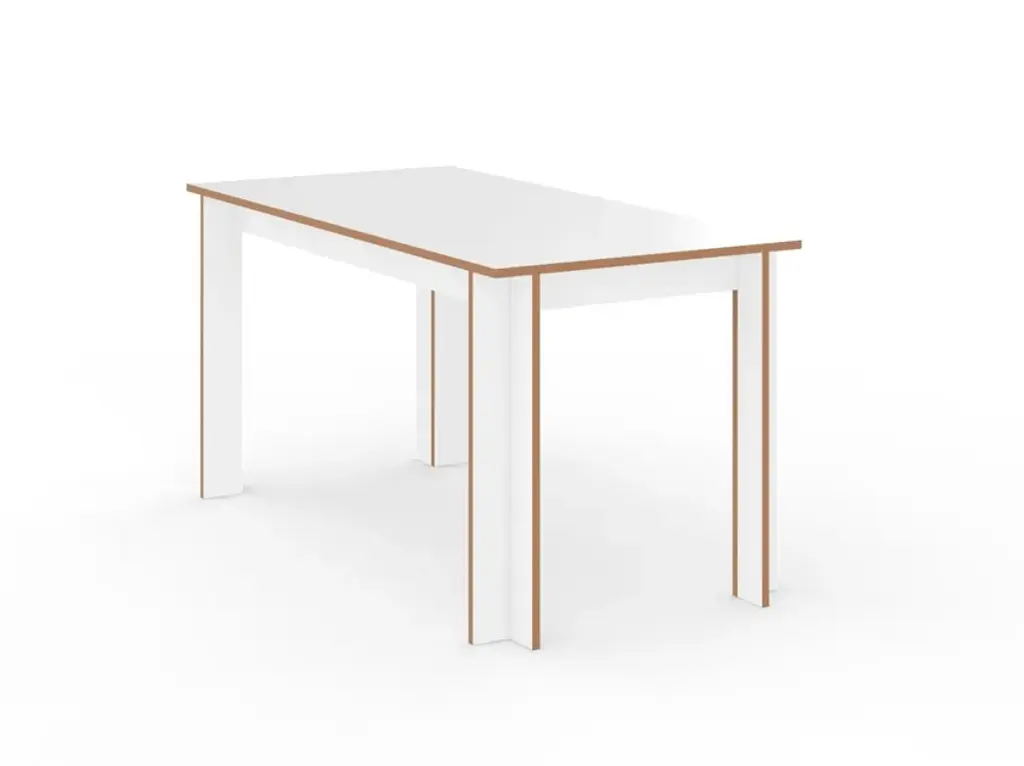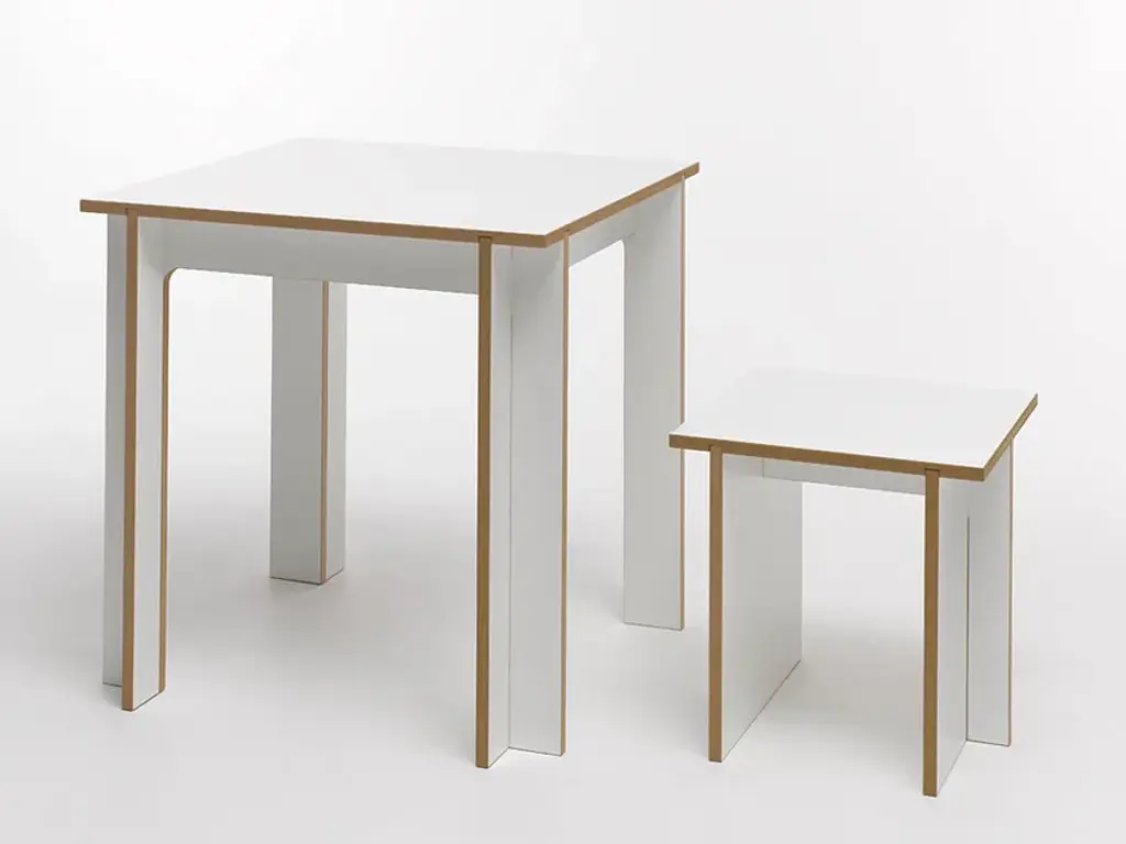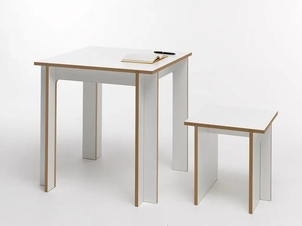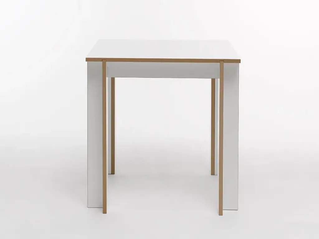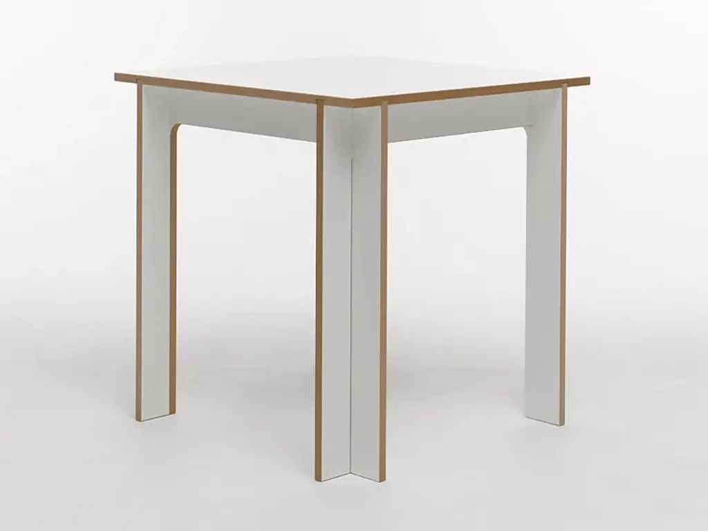 The detachable table, consisting of only five individual parts. Desk top and legs be plugged together and made simply neverthelessa high stability possible of the construction. For the assembly no tools are needed. Folded up all components fit into a cardboard box of the size of the desk top. Material MDF melamin resin coated, white Size L. 59.1'' or 29.5'' x W. 29.5'' x H. 29.5''