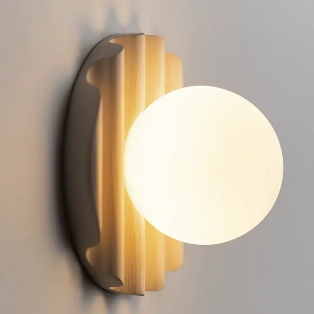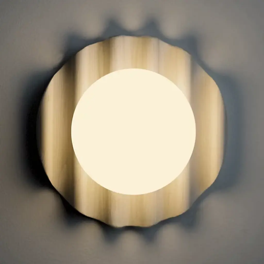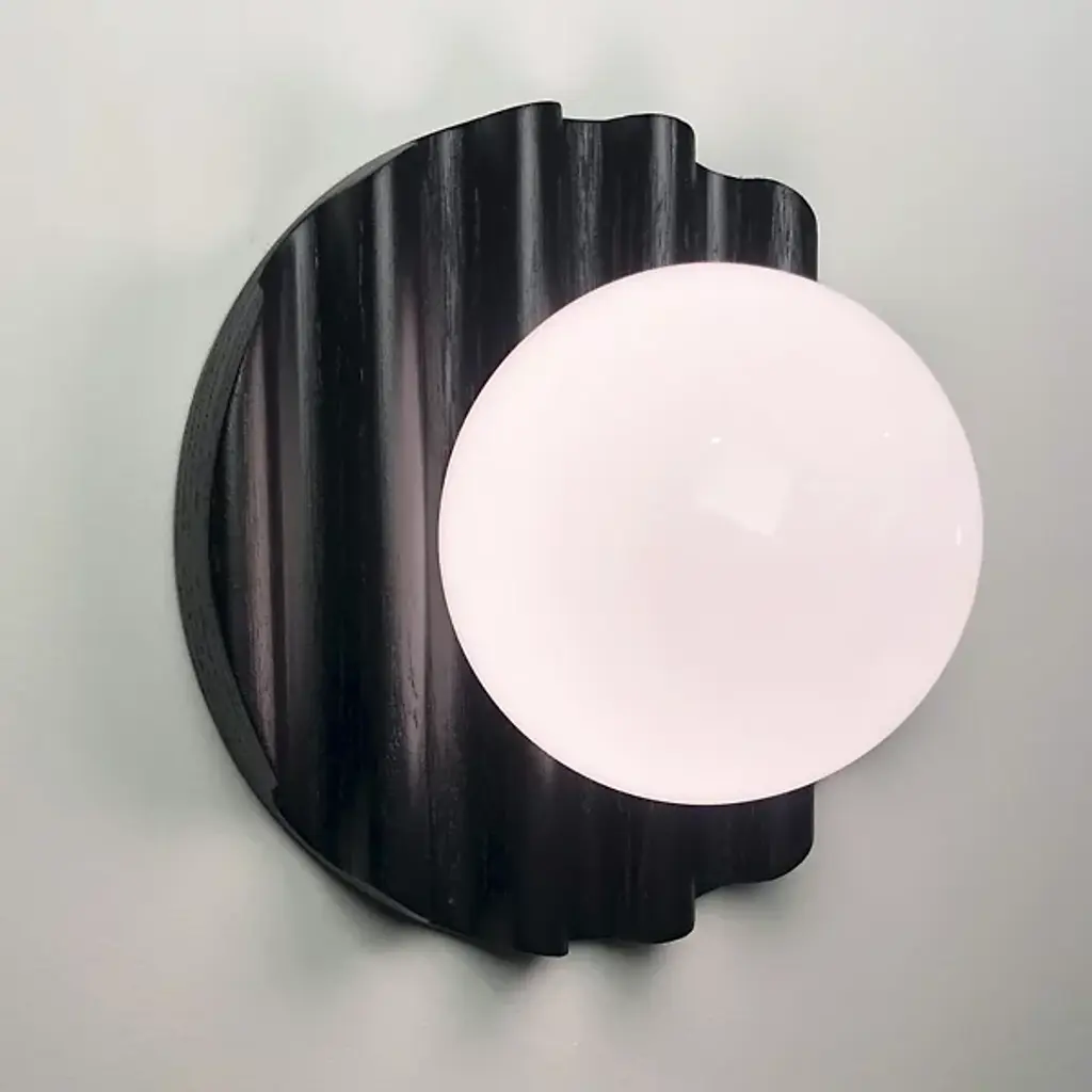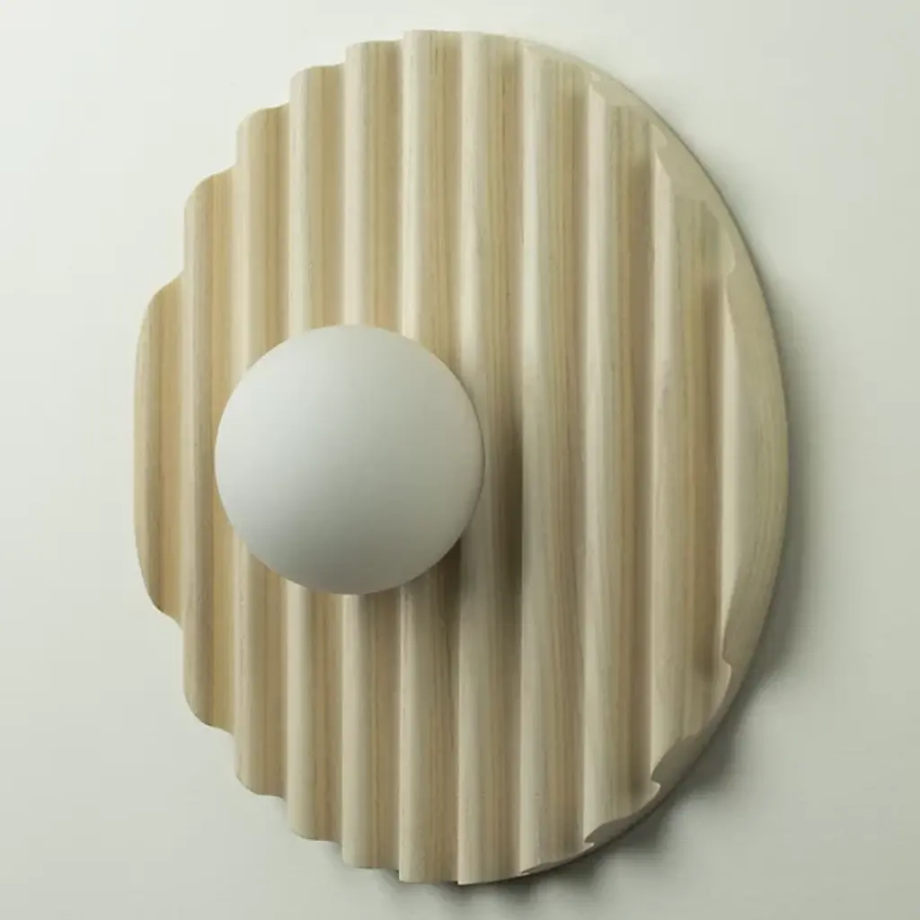 Provide balanced, broad appeal to indoor walls with the subtle lines of the Tablet Ripple Wall Sconce from Tomnuk Design. An iconic, contoured design from the innovative mind of Jordan Tomnuk. It starts with a round, wooden wall plate enriched with curving vertical contours, setting strong lamping beneath a round glass shade. Elegant and ADA-compliant, the translucent shade medium cuts glare, transforming it into a warm wash of light that splashes out to the sides, enriching the sculptural construction of the sconce memorably.