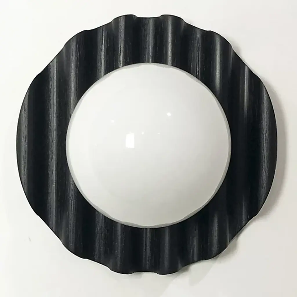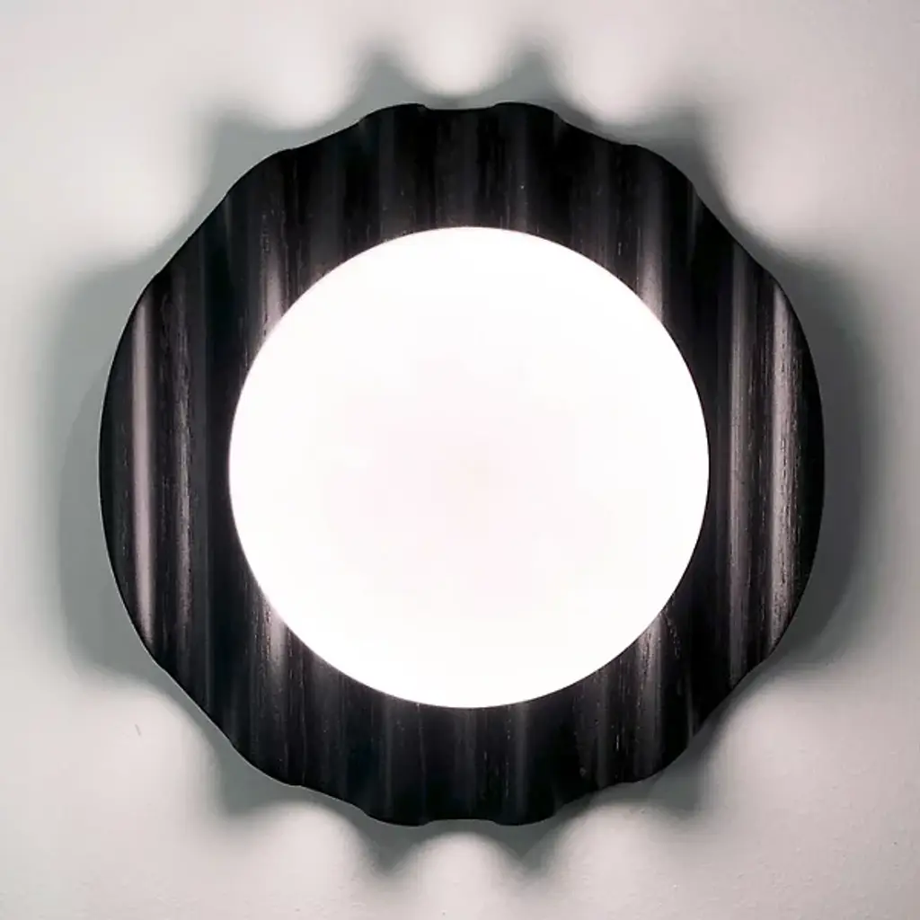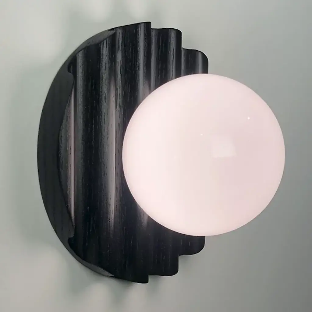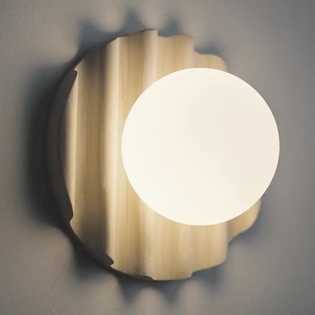 Provide balanced, broad appeal to indoor walls with the subtle lines of the Tablet Ripple Wall Sconce from Tomnuk Design. An iconic, contoured design from the innovative mind of Jordan Tomnuk. It starts with a round, wooden wall plate enriched with curving vertical contours, setting strong lamping beneath a round glass shade. Elegant and ADA-compliant, the translucent shade medium cuts glare, transforming it into a warm wash of light that splashes out to the sides, enriching the sculptural construction of the sconce memorably.