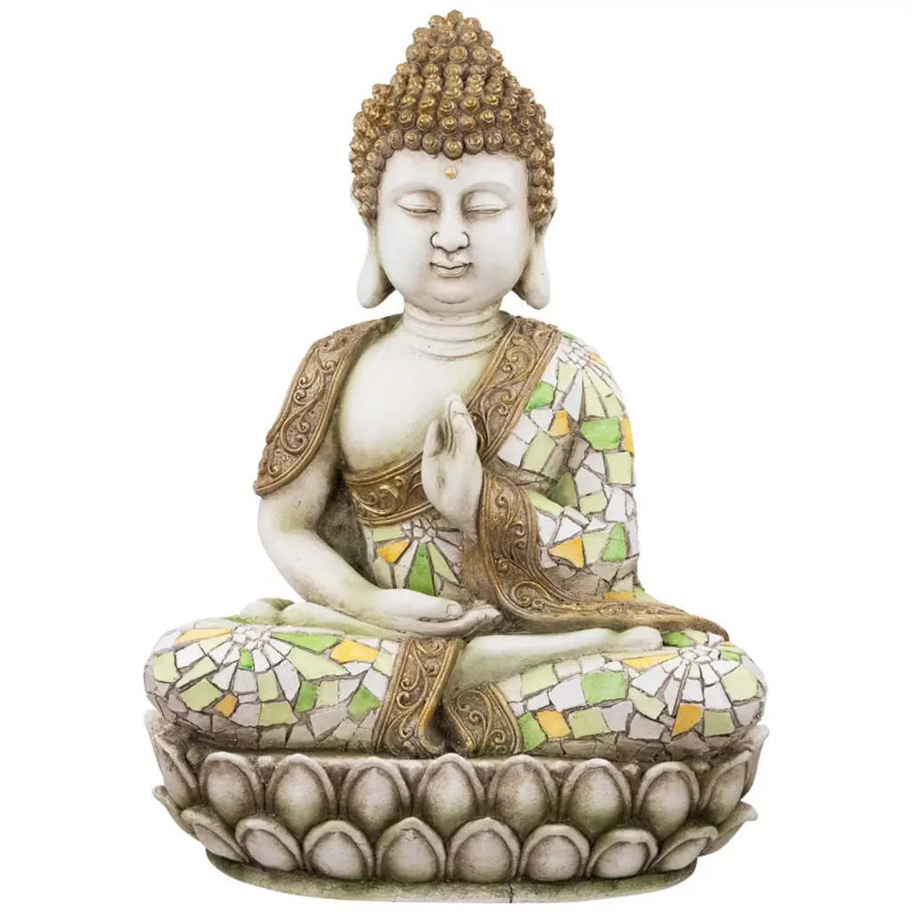 The soothing water sounds, and peaceful nature of the Sitting Buddha Tabletop Water Fountain by Nature Spring brings tranquility, relaxation and beauty to your living or work area. The indoor fountain features a polyresin construction for durability, a rolling glass ball water feature, multi-colored LED lights, a built-in electric pump, and is easy to set up for low stress assembly. Whether you use this fountain as a decoration on a desk in your office, on a small shelf in the living room or for creating positive Feng Shui in your home, the soothing sounds of this table top fountain are sure to leave a lasting impression!
