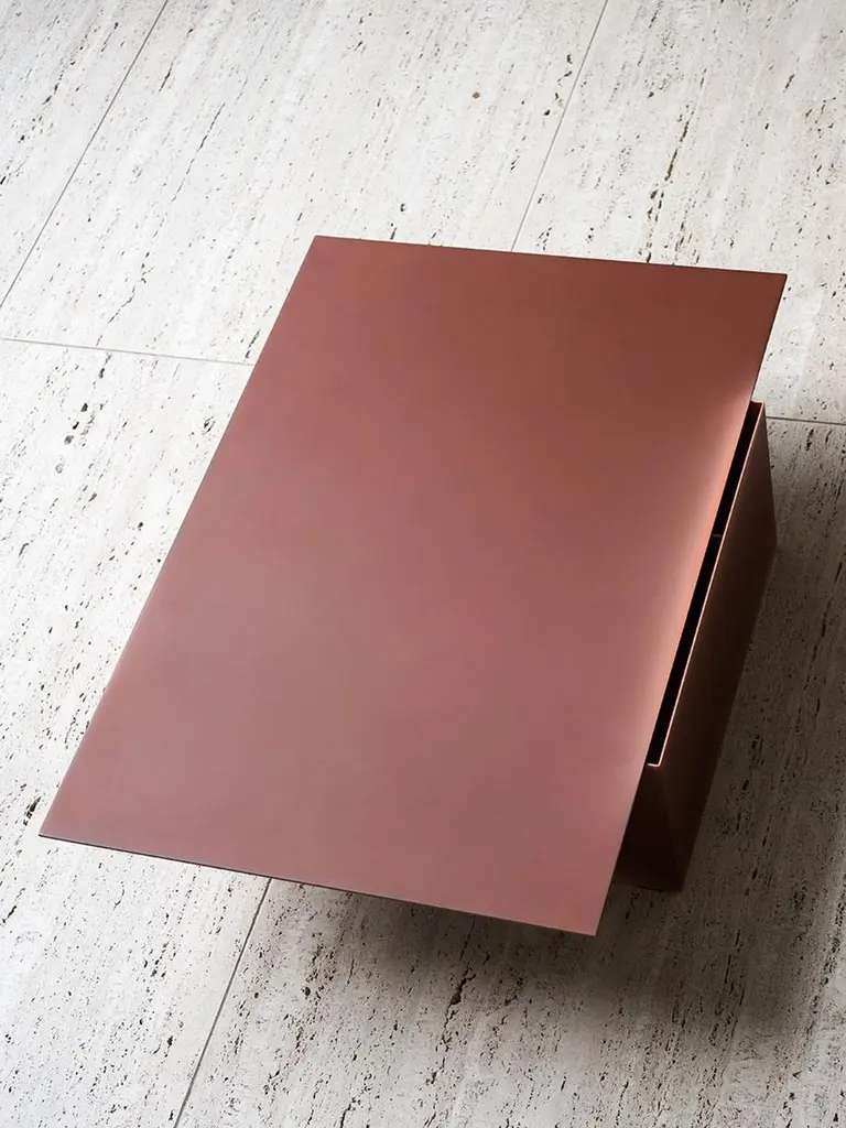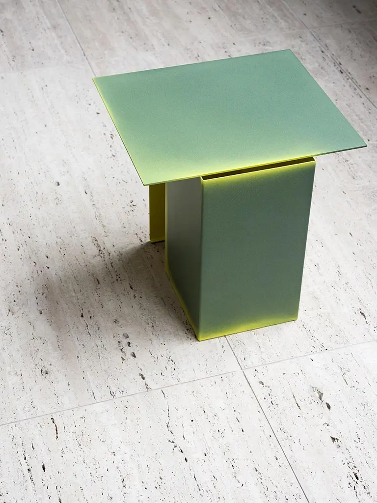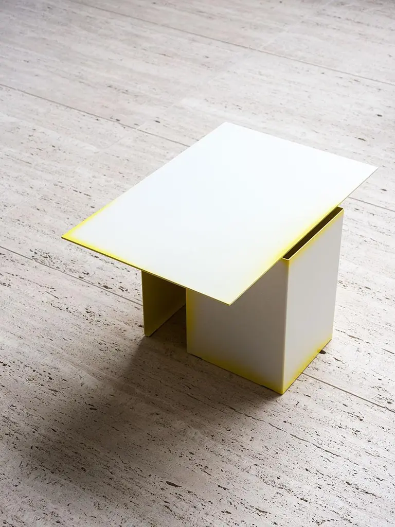 Architectural shapes inspired this collection of low tables with futuristic lines by Dutch design studio Truly Truly. Made of bent and welded sheets of metal, the Daze low tables are hand colored, one by one, so that the intensity of the paint changes as it spills out of the cuts with different effects. Artisan craftsmanship with the aid of high tech, adds a note of unpredictability to the precise geometrics of the shapes and materials. The most important feature of this tables is that the second painting, the “shade” is done by hand, so each time you will have a different result of intensity and direction of the paint.